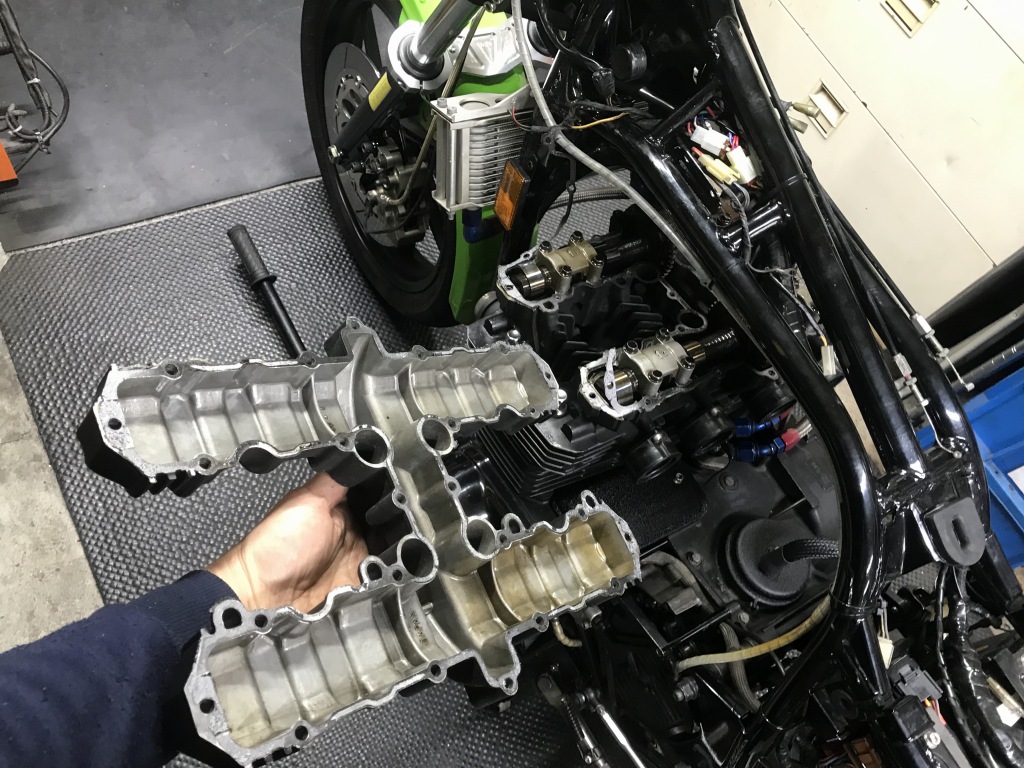 インテークはこの状態。こちらも1コマ遅れです。パワー感の無さはこの辺が原因のひとつでしょう。カムはノーマルです。