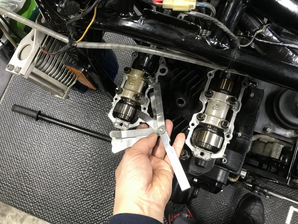 バルブクリアランスを確認します。半数がやや狭い状態です。