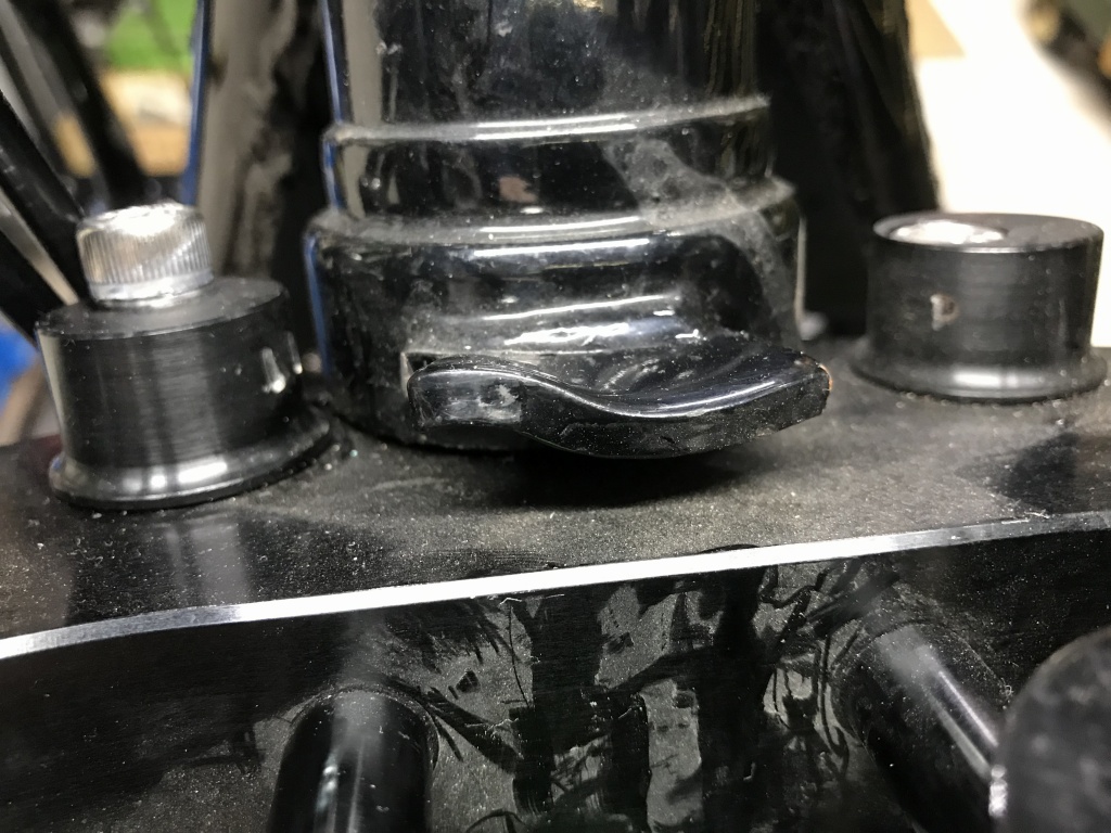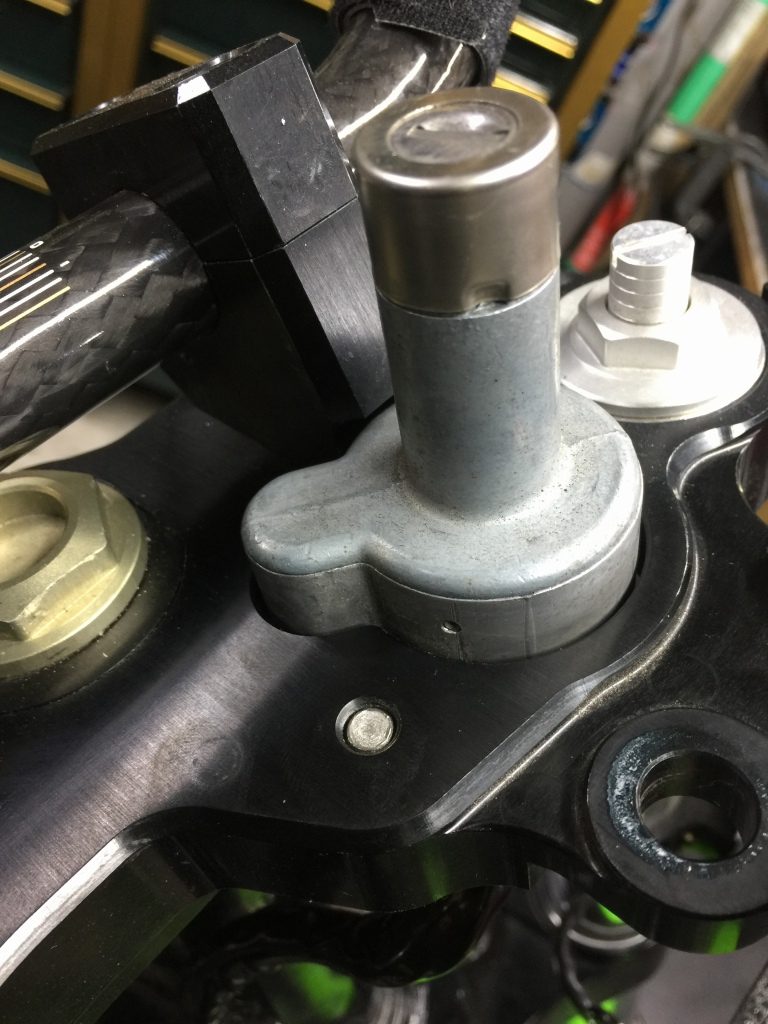 ステムシャフトは、アンダーブラケットに対しても分離できる構造です。偏心カラーが浮いてしまっています。