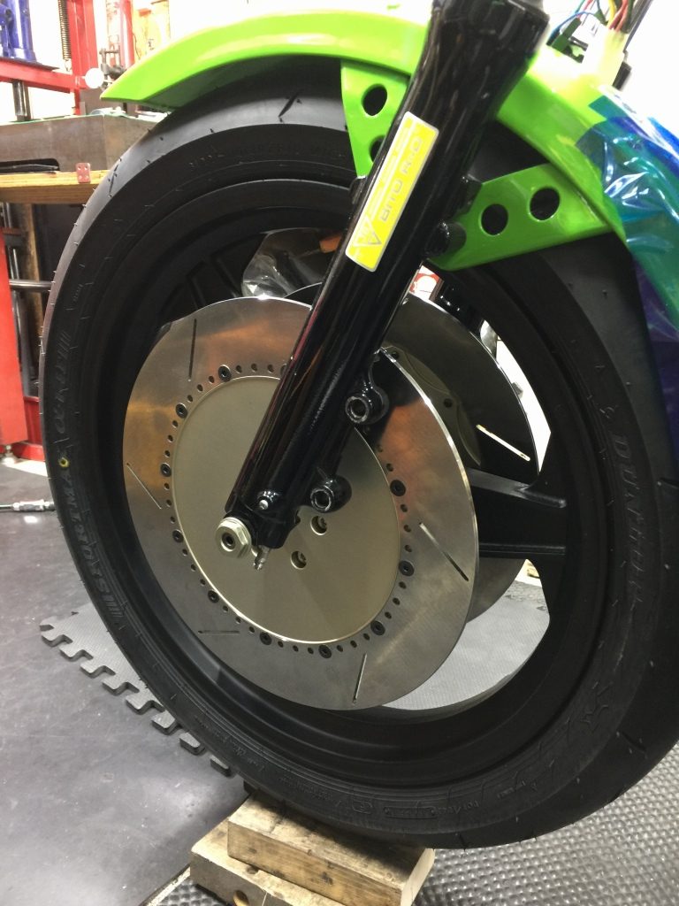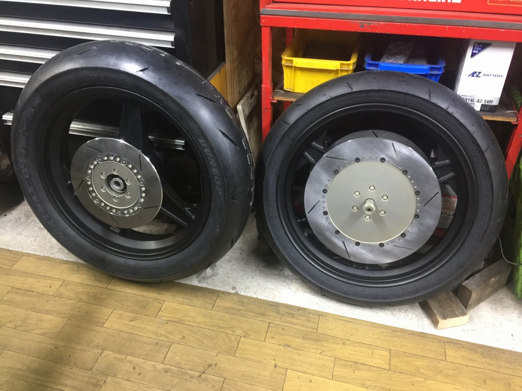 車体にセットするとこんな感じです。左側もフラットディスクになります。