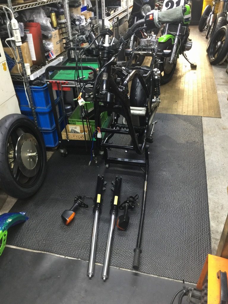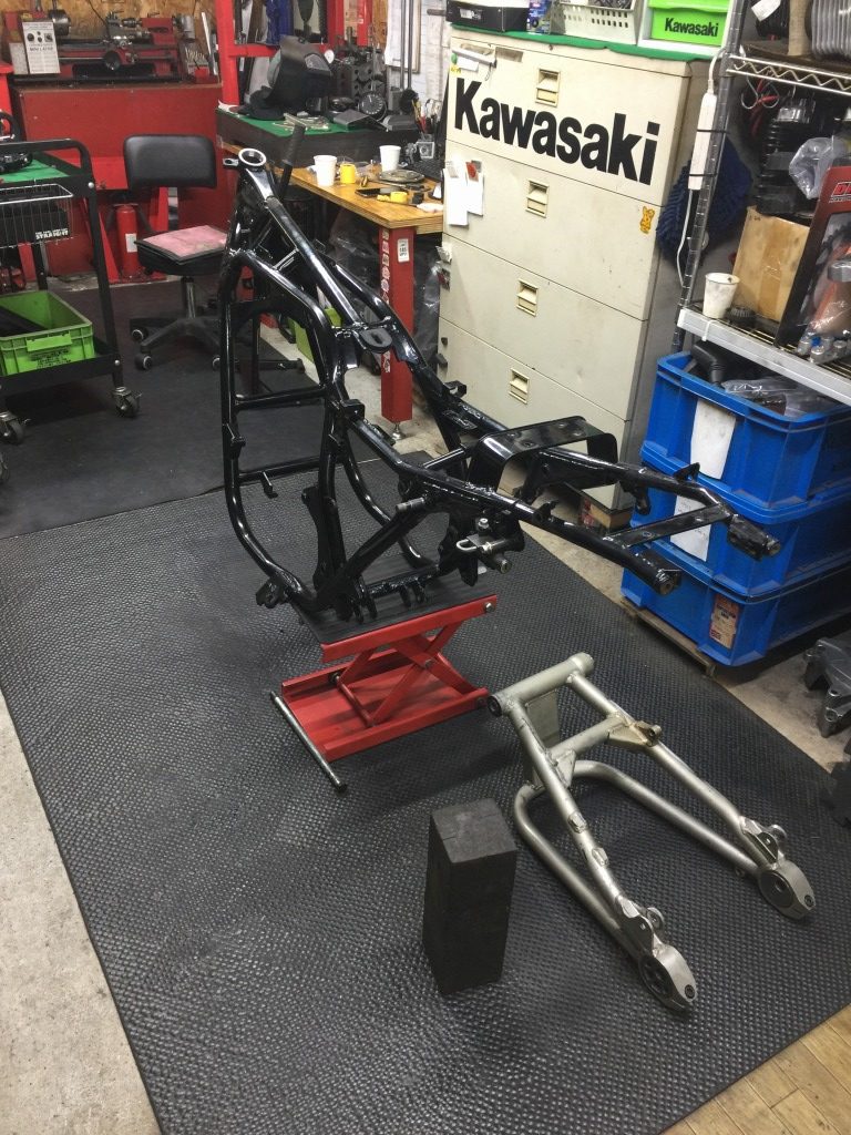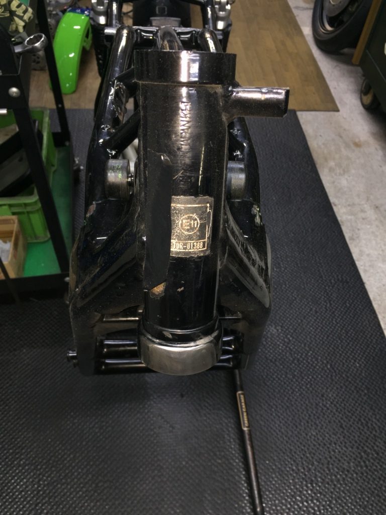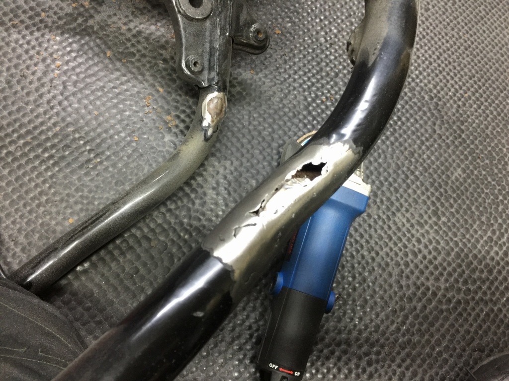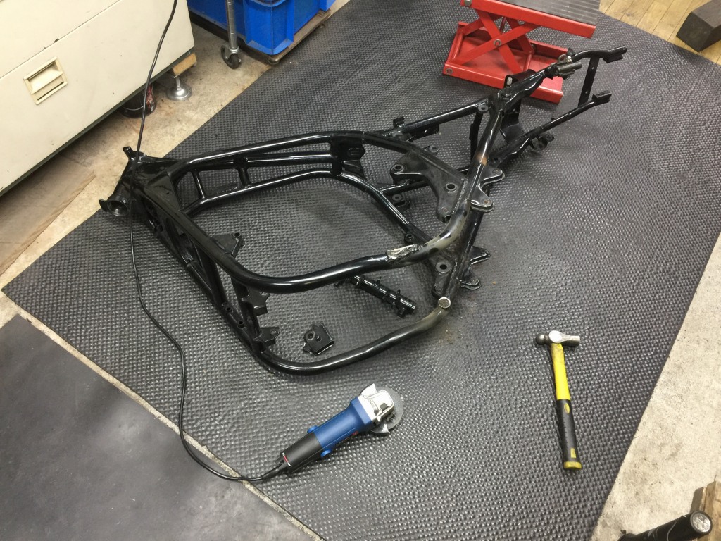 続いて、サイドスタンドブラケットとフレーム横パイプを削除するのでフレーム単体にします。