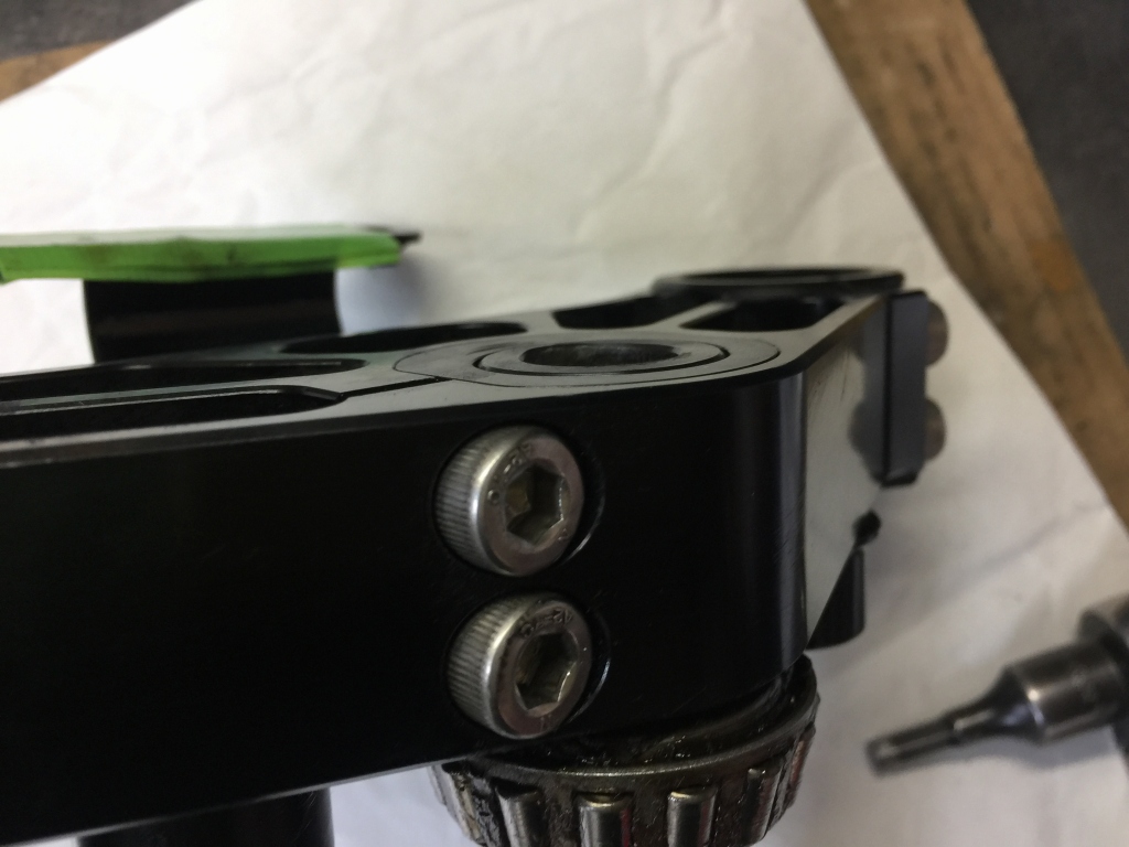 ステムに取り付けてみます。ボルトはステム上面を超えないので大丈夫です。長過ぎるとハンドルクランプの底面に当たるので要注意です。