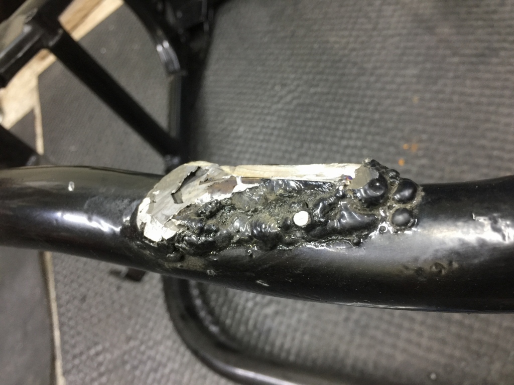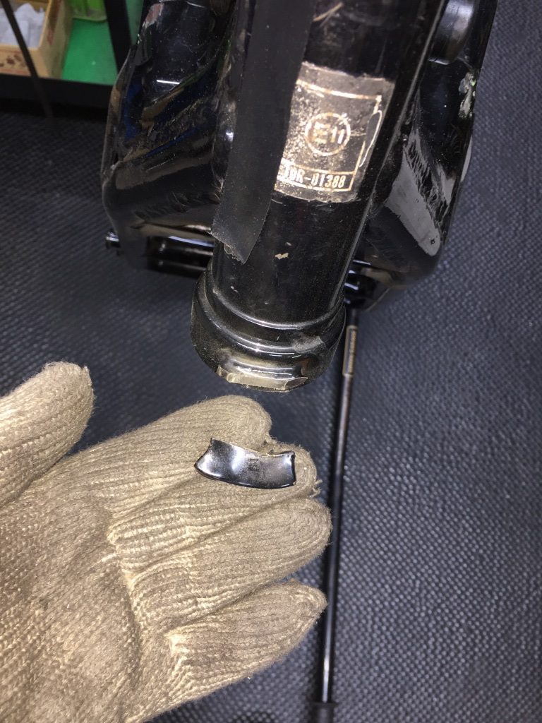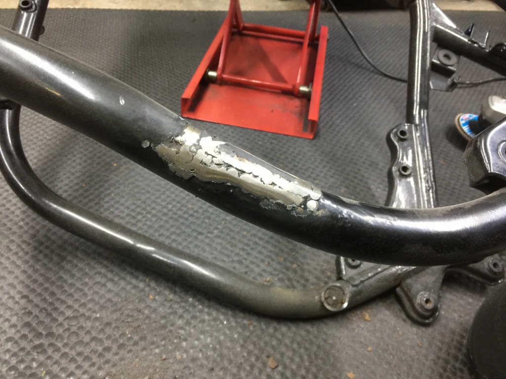 曲がったうえに塗装がのっているので、転倒修理の際にフレーム塗装したのでしょうか。
