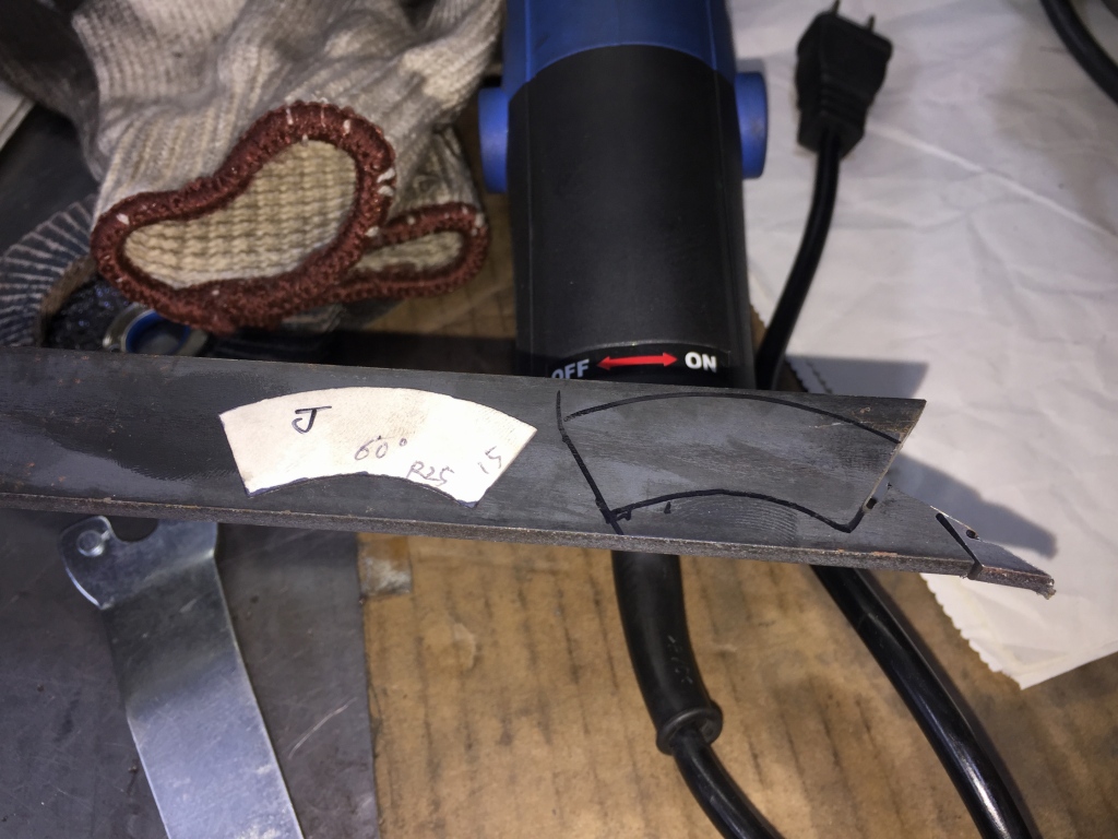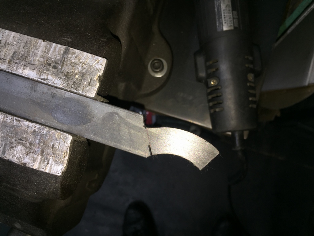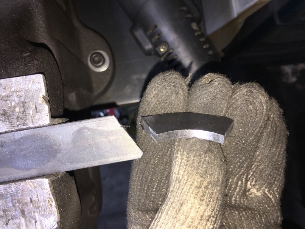 ハンドルストッパーを修理します。曲がった方は大きく削ってあり非対称です。