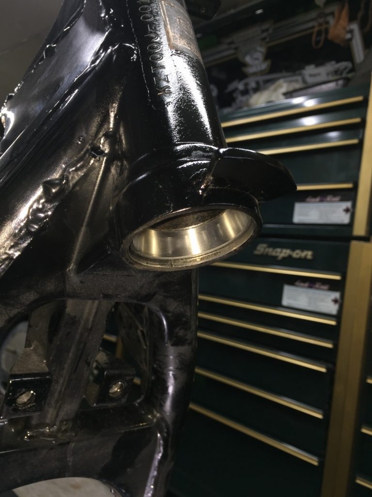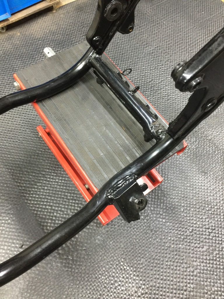 フレームに溶接します。べリングのハウジングなので歪まないよう注意して行います。