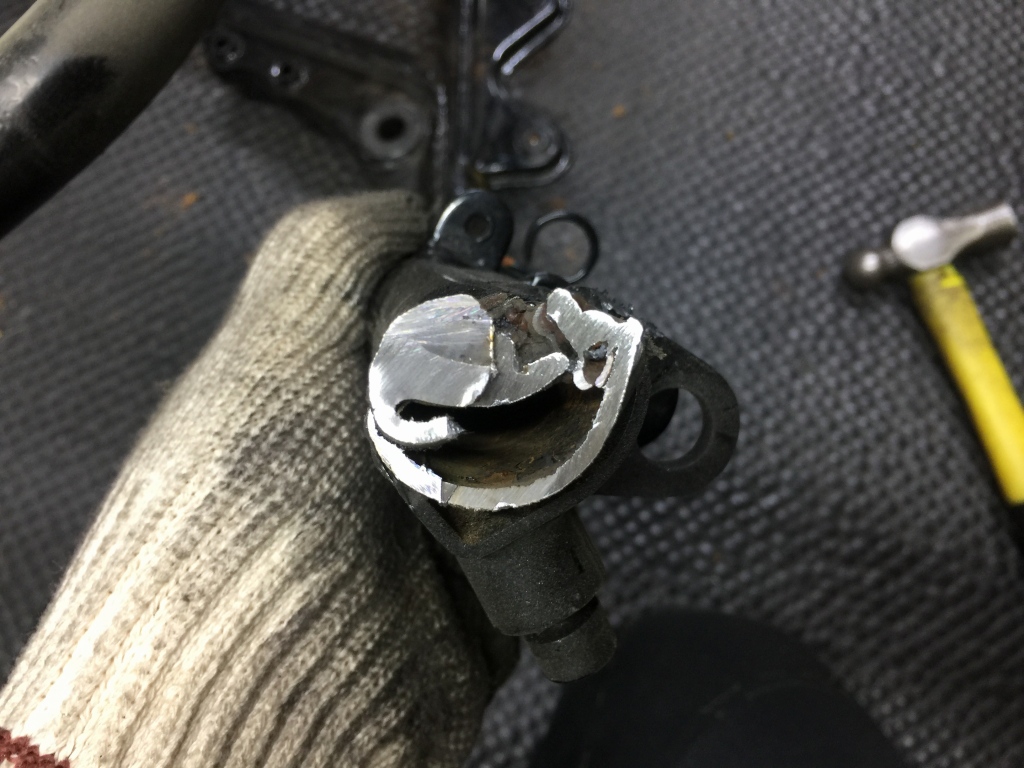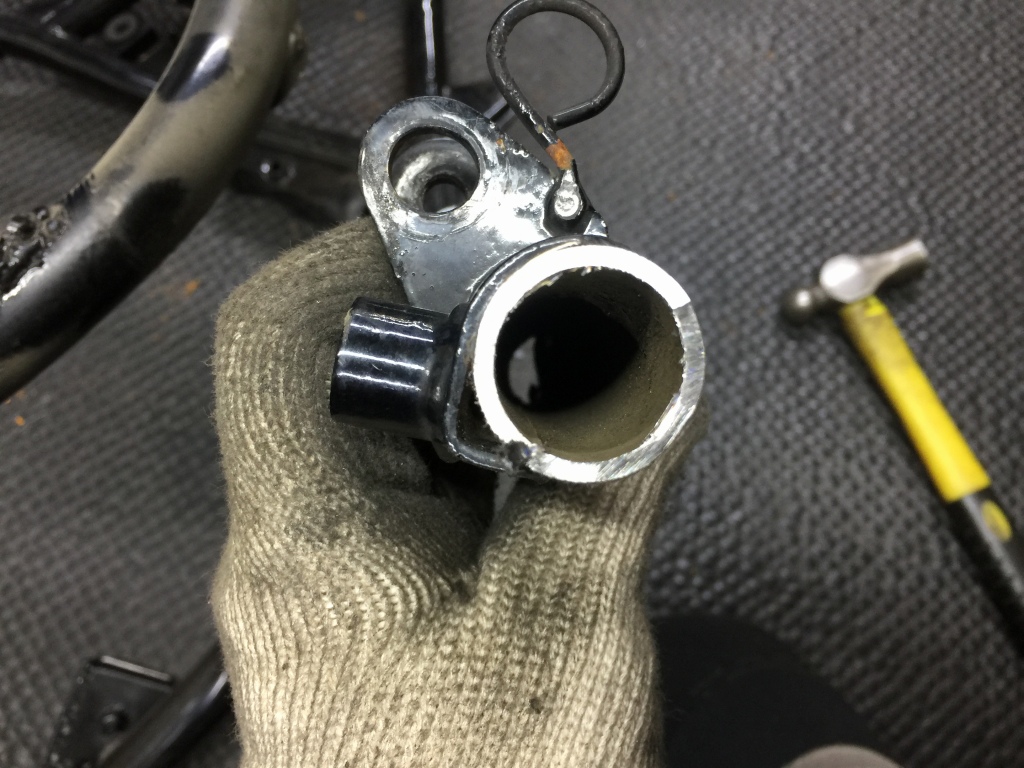 ハンドルストッパーは大きく曲がっているので、修理することになりました。