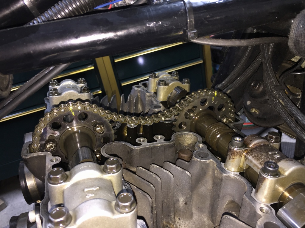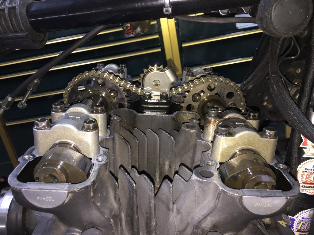 カムチェーンテンショナーはマニュアルですが、レンチでクランキングしてみてもカムチェーンのたるみは感じられません。