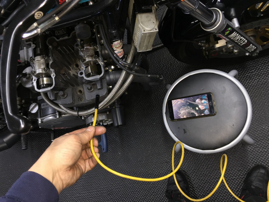 シリンダー内を内視鏡で点検します。
