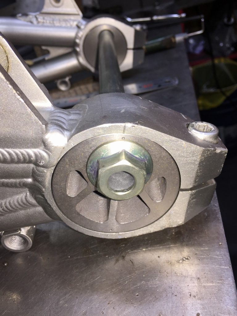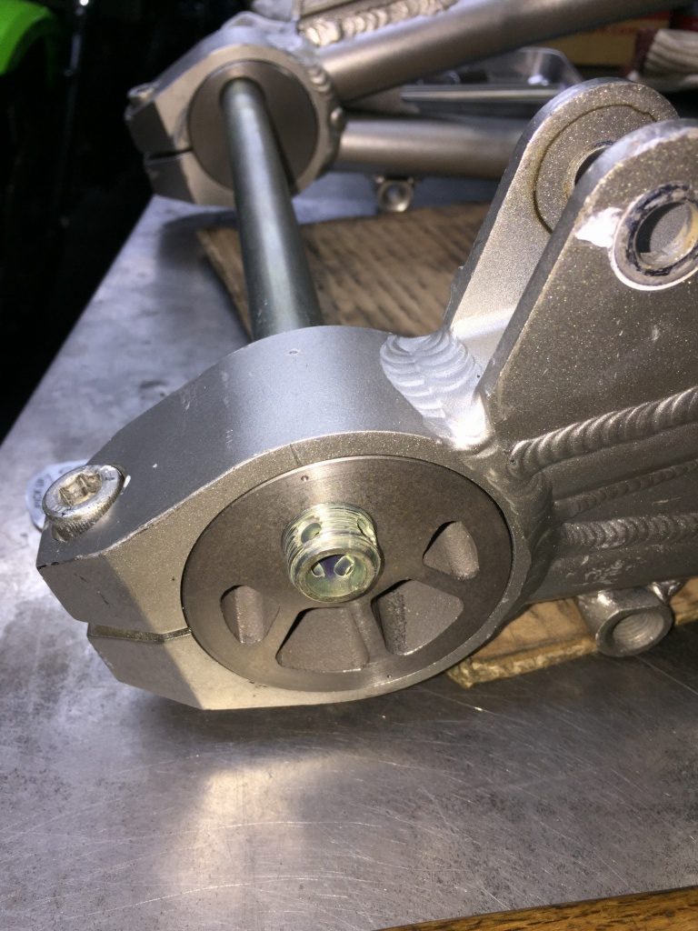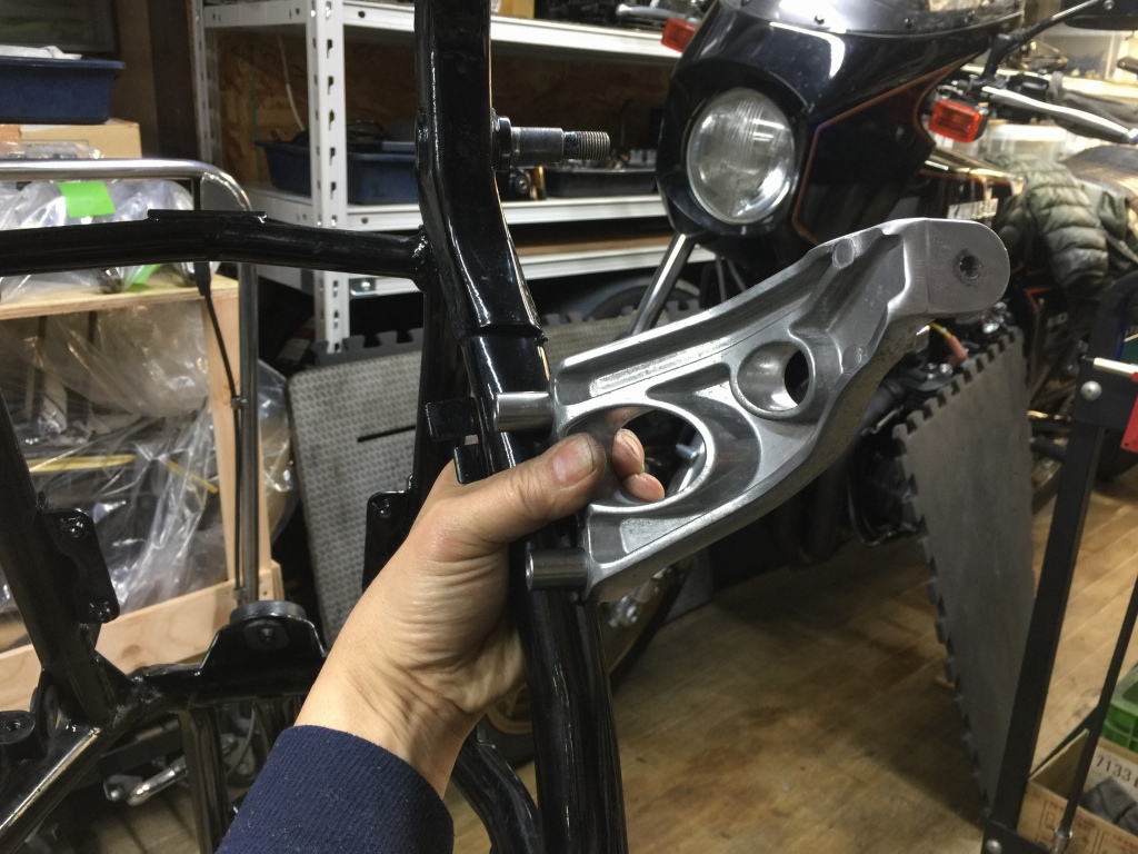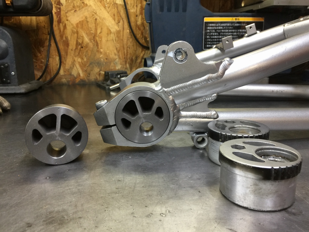 S1と同様の鋳物製素材を使い、ZRX用に仕上げたものを使います。右側はS1同様、エキセンに雌ネジを設けた仕様です。