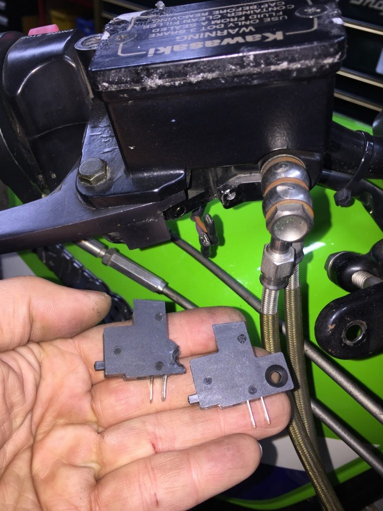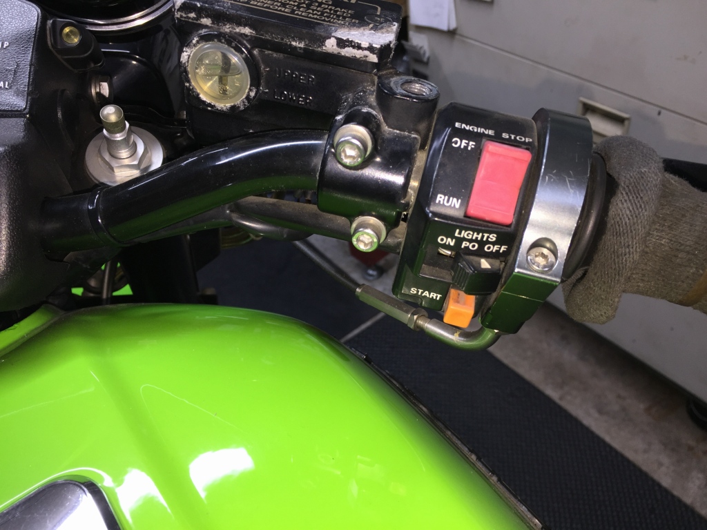 ブレーキランプも点いたり消えたりなので、接触が悪いフロントブレーキスイッチを交換します。