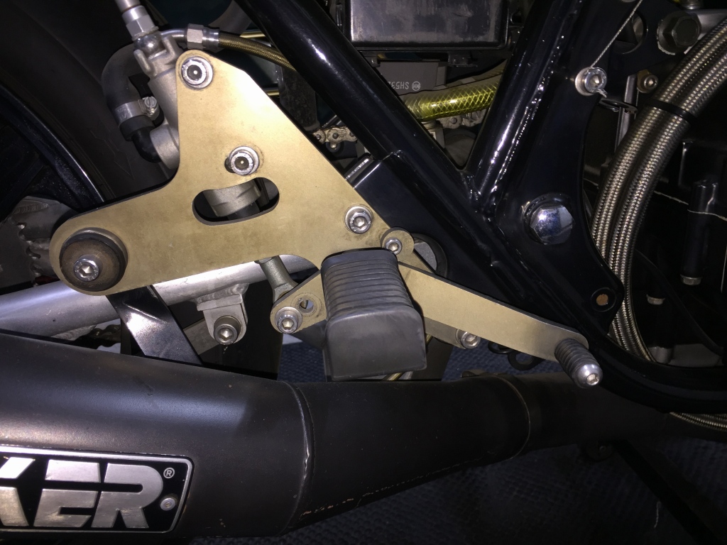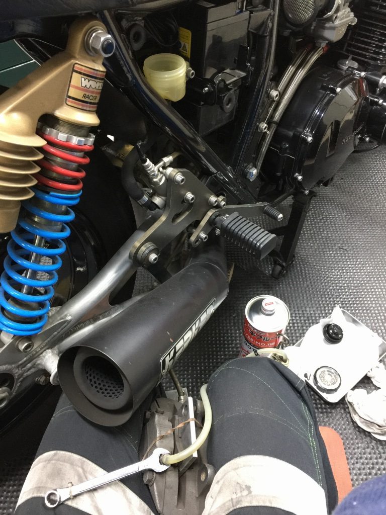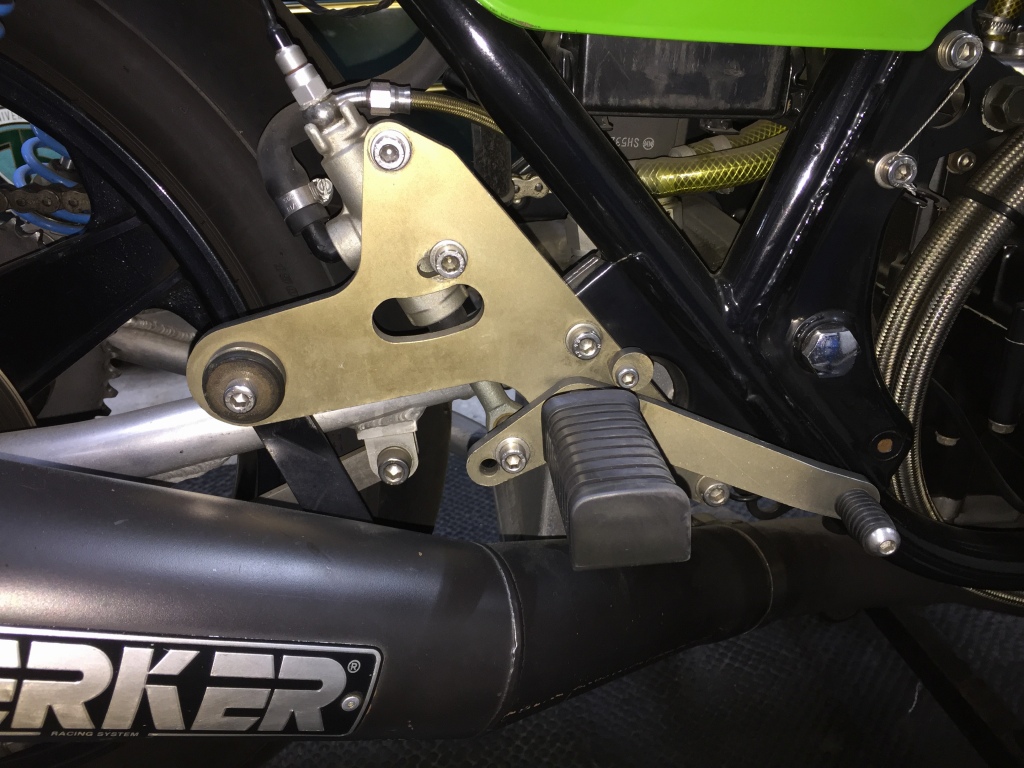 リヤブレーキペダルはかなり強く踏まないと点灯しないので、レバー比を変更します。