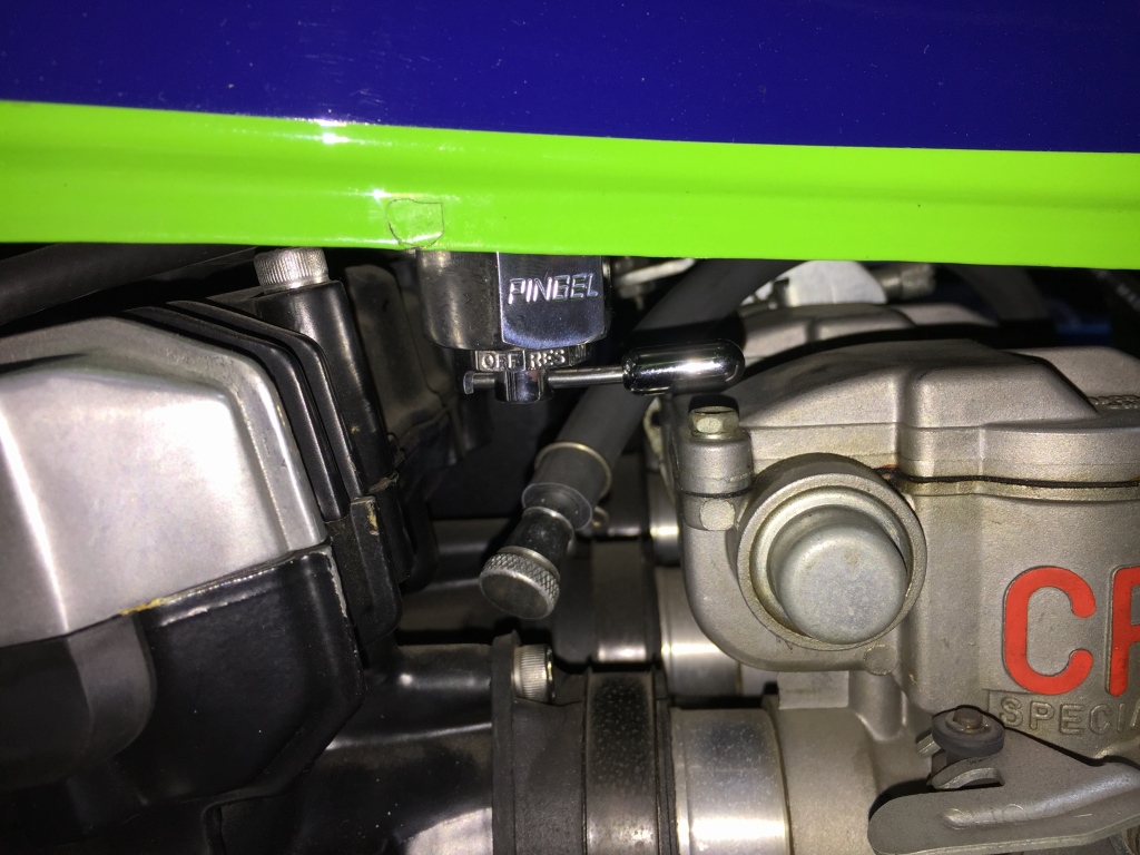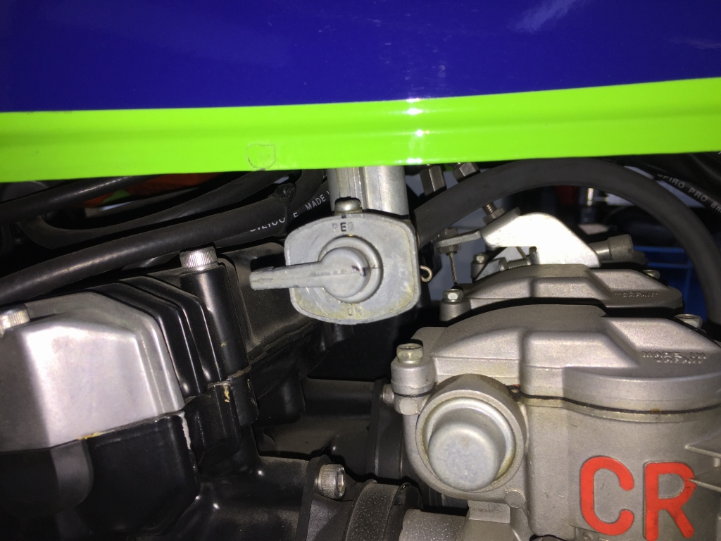 ハンドルを切るとスロットルケーブルとタンクが近過ぎます。これだと転倒した時に直ぐにタンクを凹ましてしまいます。