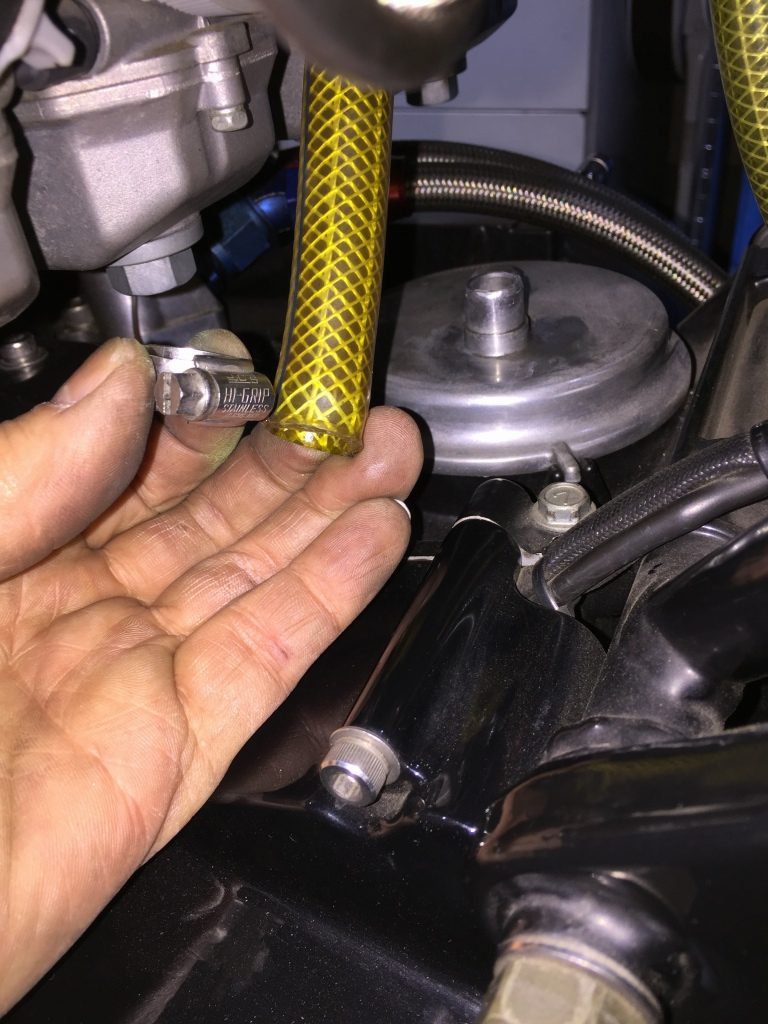 ブローバイホースは、直ぐ抜けてくるようなので、抜け止めのあるブローバイカバーに交換します。