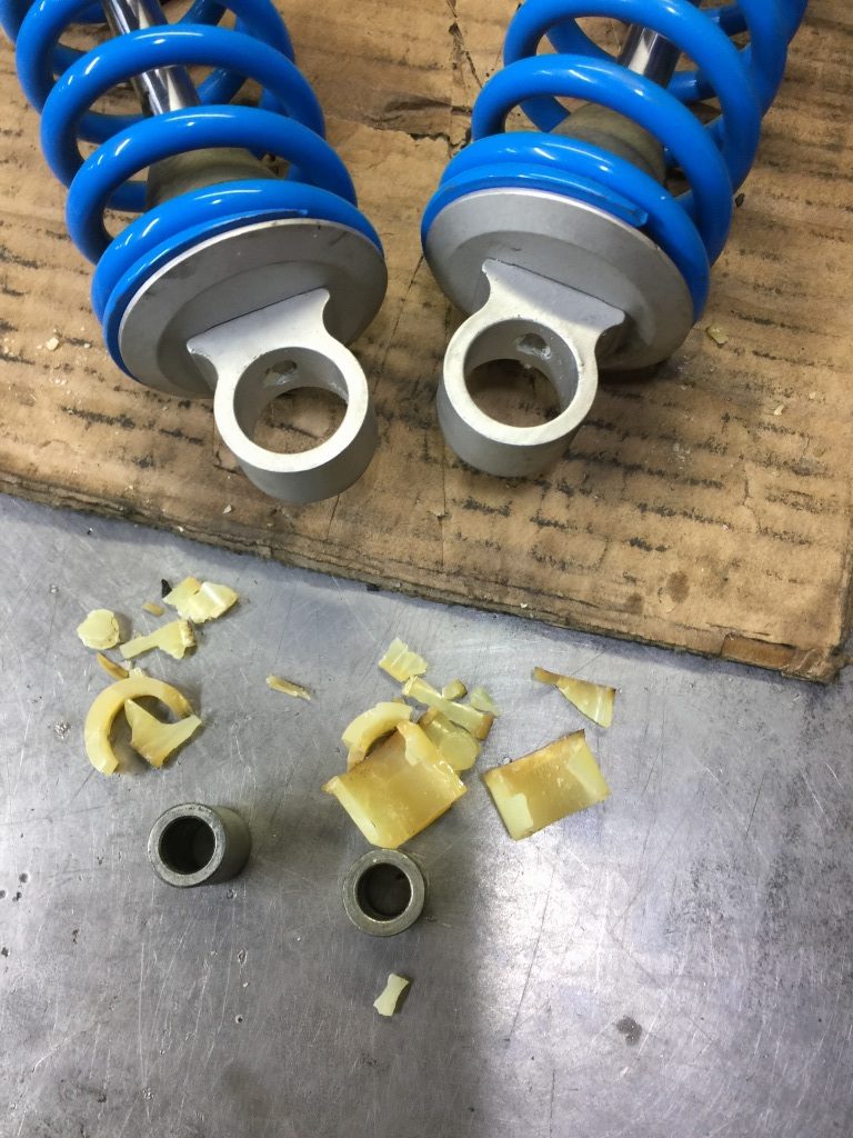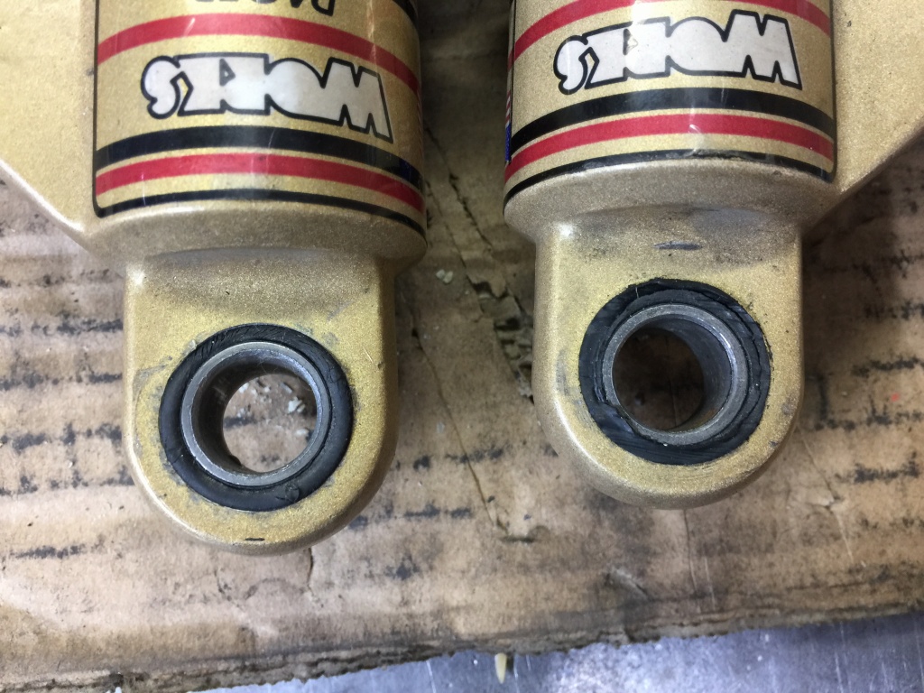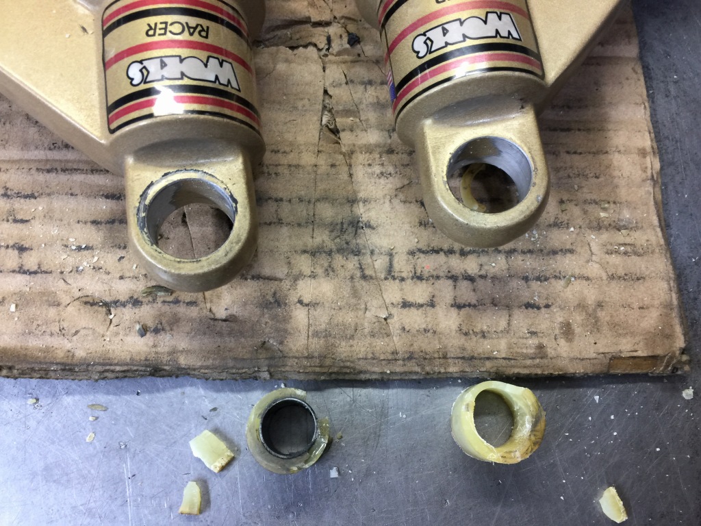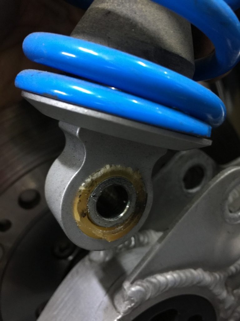 リフトアップや着地する時にリヤ周りからコツンと振動が来るので点検すると、リヤショックのブッシュが破損していることが解りました。