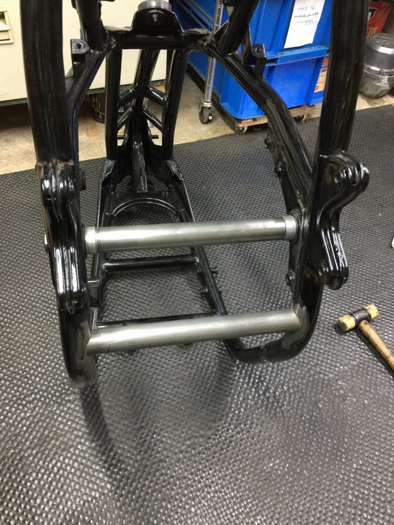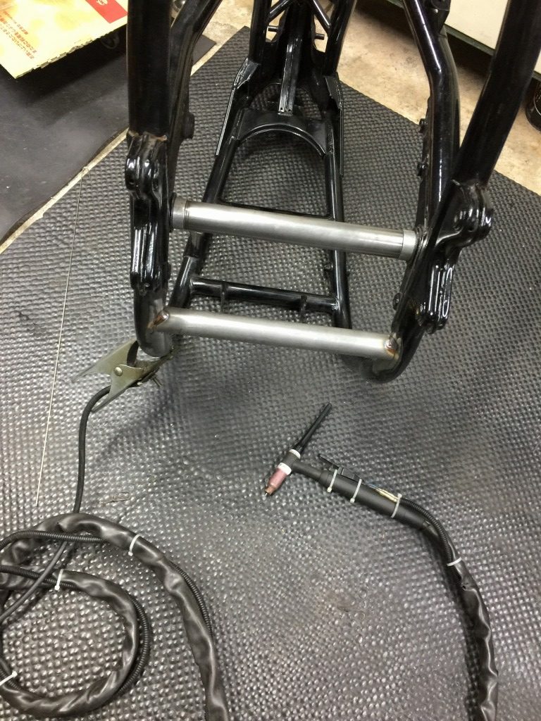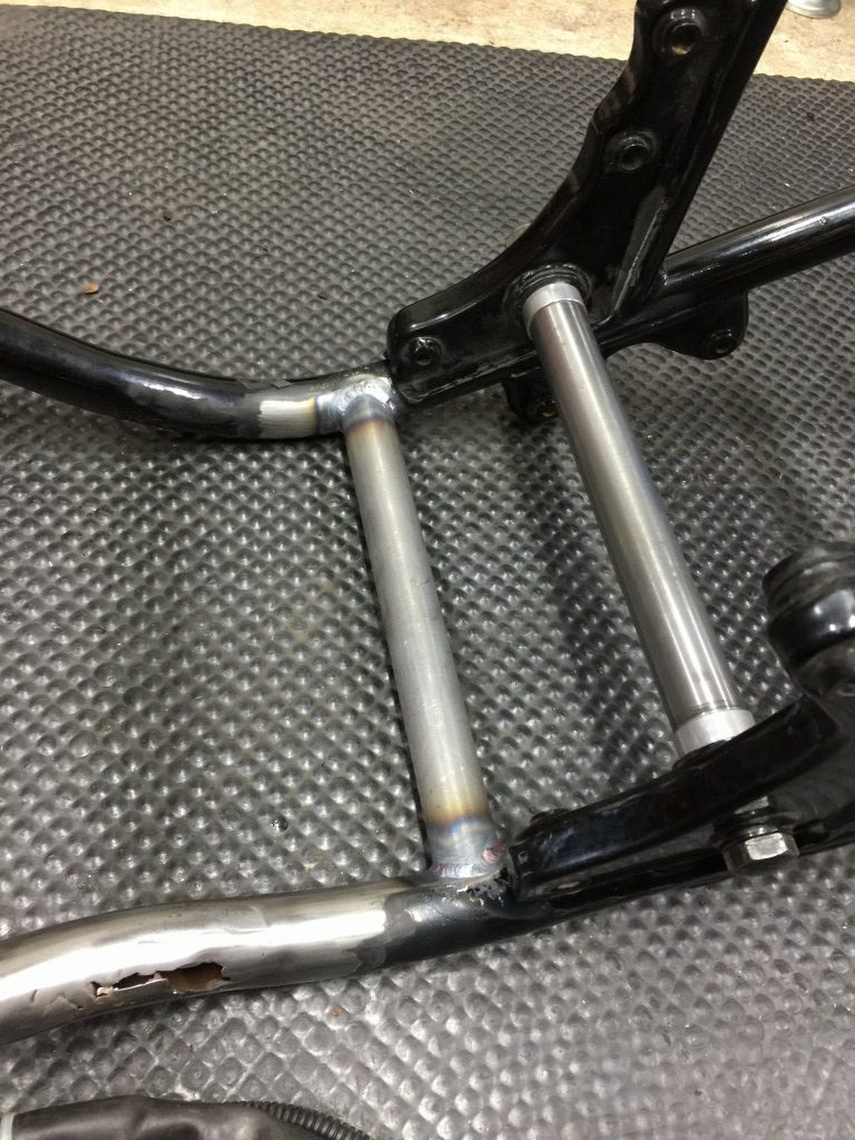 全周溶接して、横パイプは復元完了です。見た目もシンプルで軽量化にもなりました。