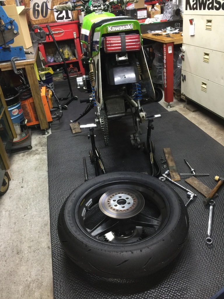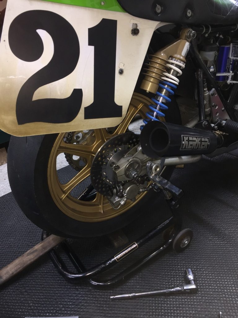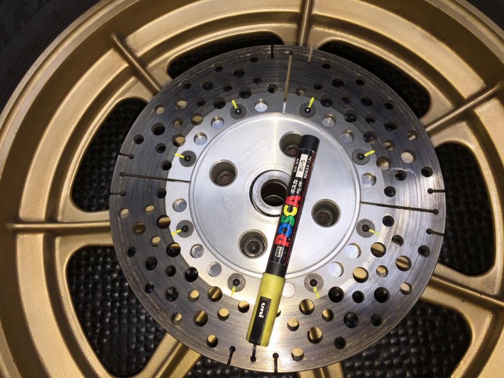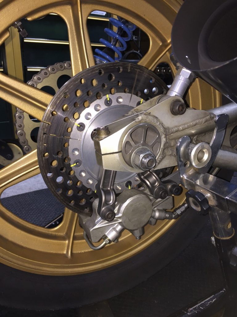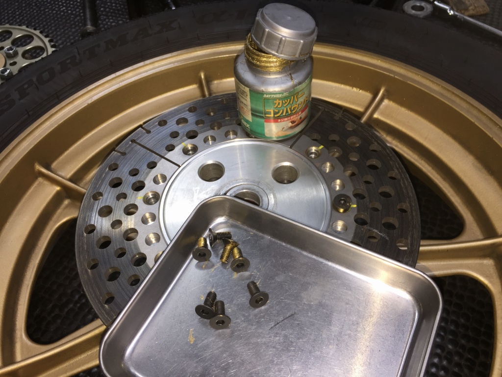 先日の筑波走行でクラックの入ったリヤローターを交換します。