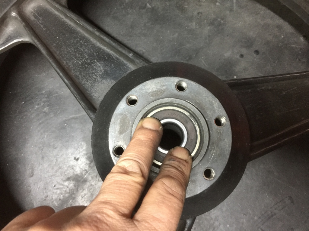 べリングのアルターレースが、ホイールの中で滑って回ってしまいます。長年の使用で緩みが出て、ガタから摩耗が進行したようです。