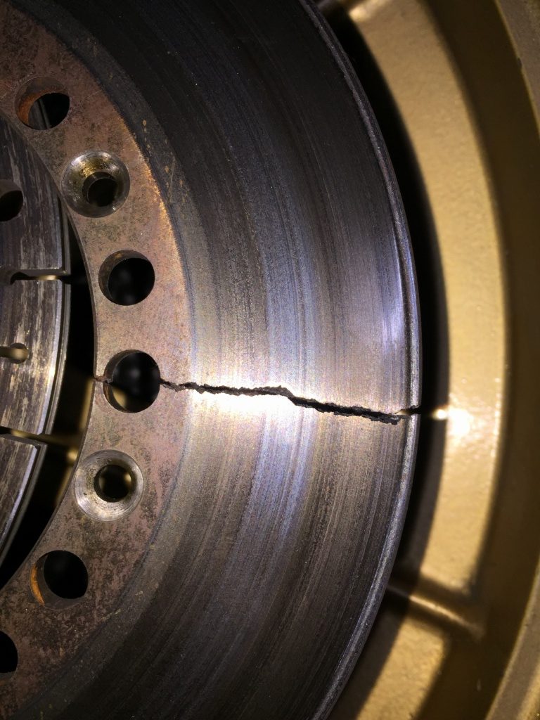 ニューモデルのレーシングカーのテストなどではよく見る現象。R32 GT-RのN1レース車開発の仕事の際、サーキットでプロのレーシングドライバーがテストしたローターは、本当に良く割れて困ったものでした。