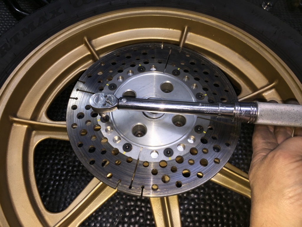 皿ボルトは消耗品なので新品交換し、規定トルクで締め付けます。
