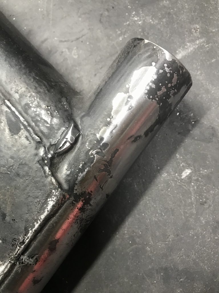 溶接痕は、斜めに一周続いているので、カットしてから継いだもののようです。