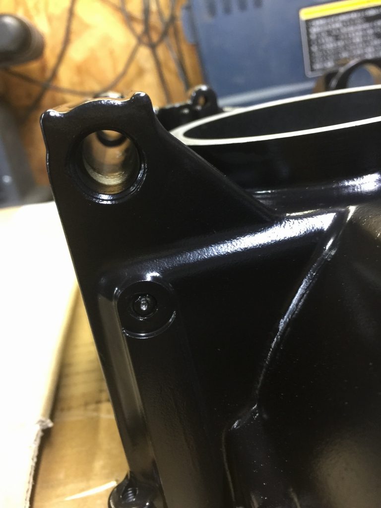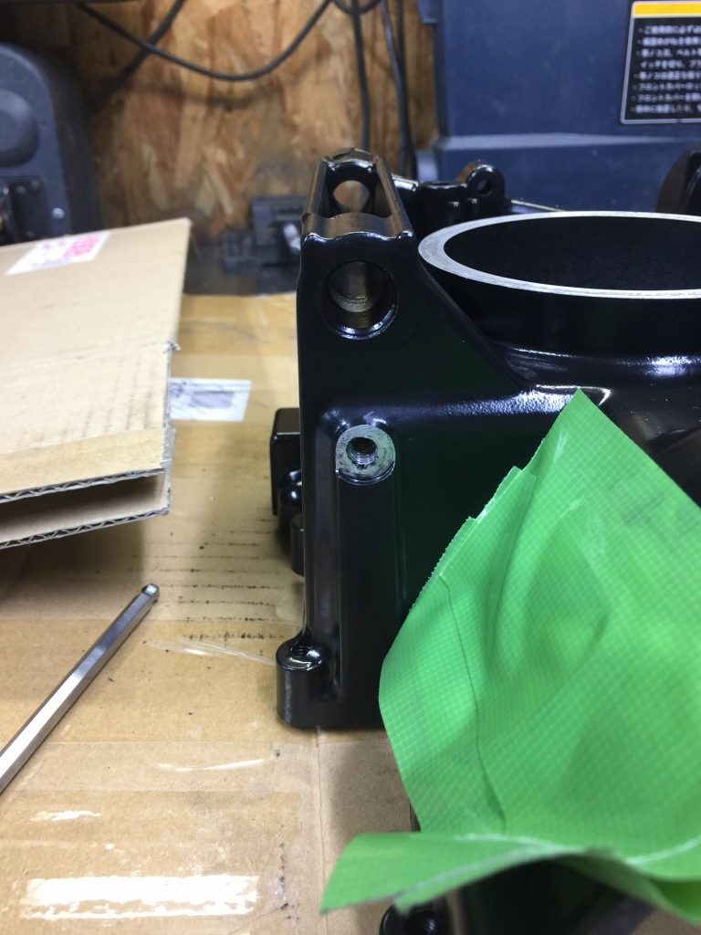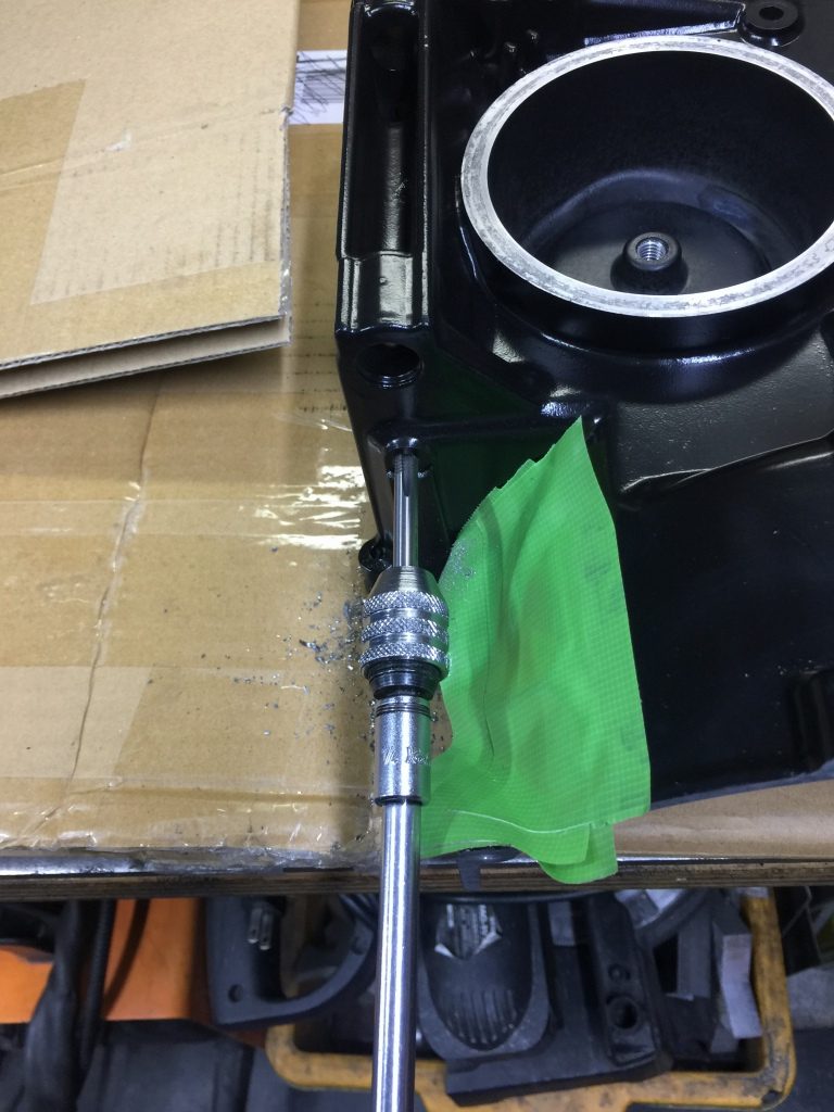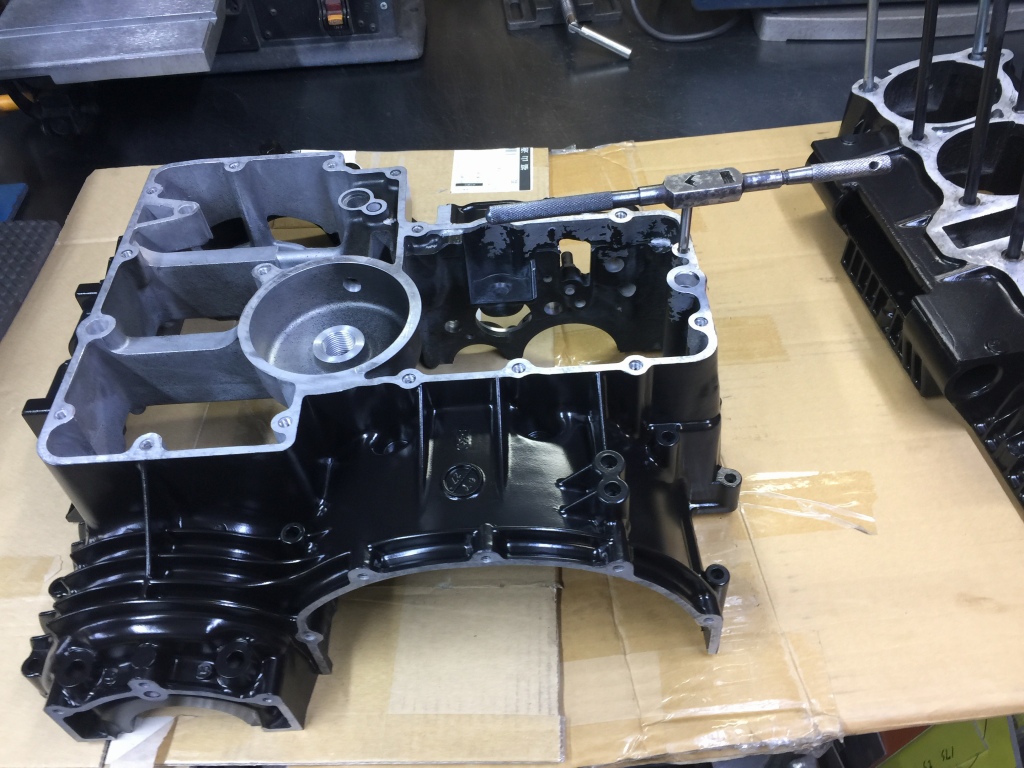 クランクケースのネジ部は、タップを立ててメディアの残りなど異物が無いか確認しておきます。