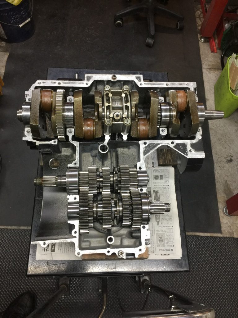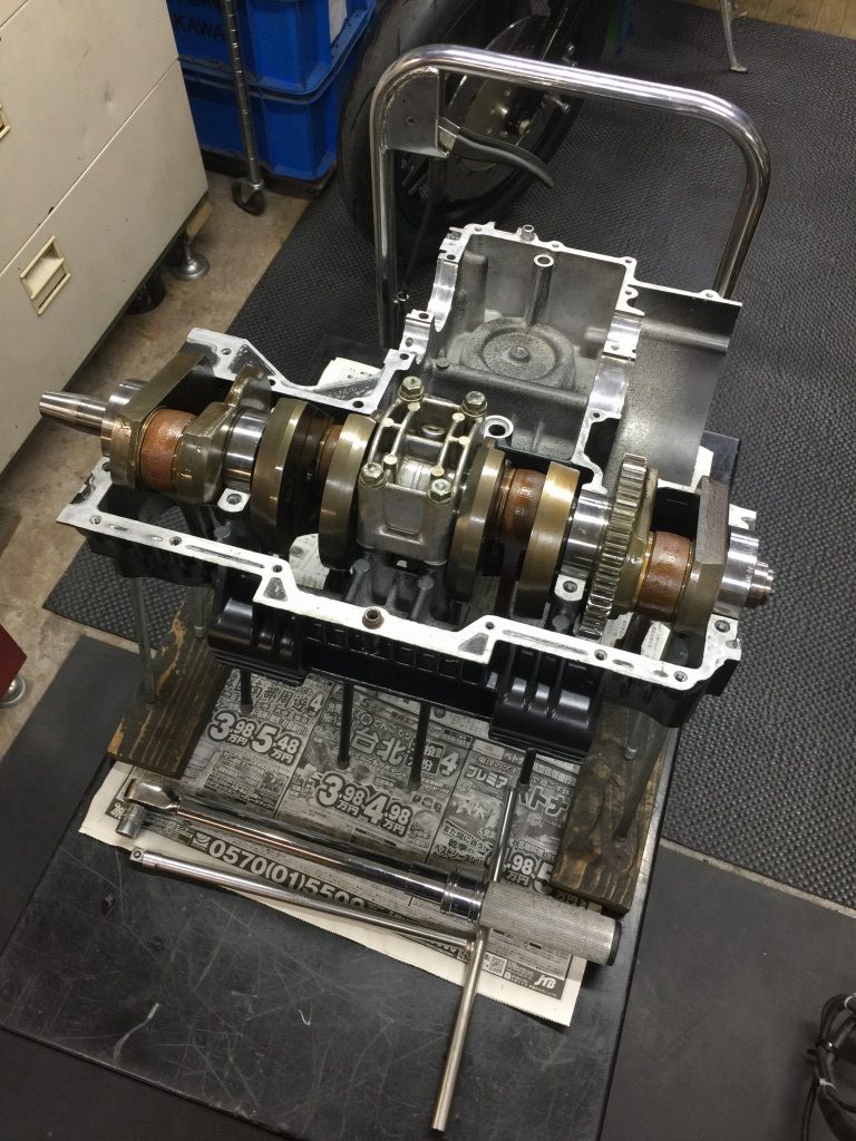 クランクが決まったところで、カムチェーンを通してアッパーケースにセットします。
