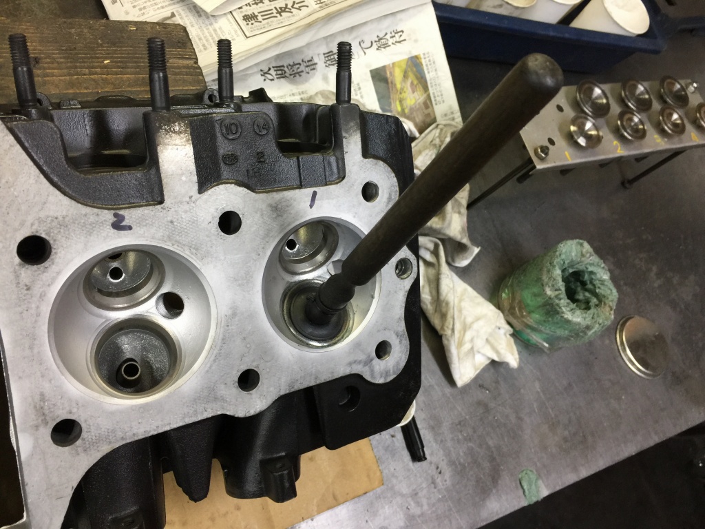 ヘッド側のシートリングはきれいなので、既存のバルブを擦り合わせします。