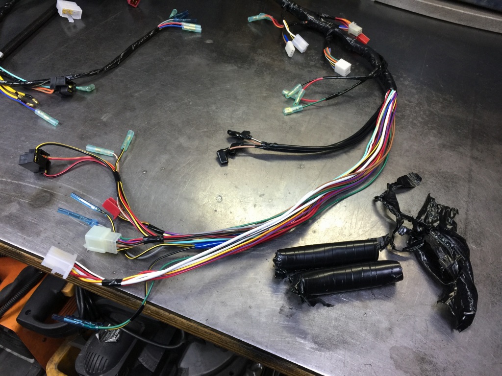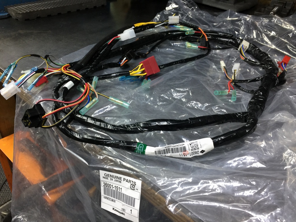続いて、メインハーネスを加工します。こちらはJ系で唯一今でも買えるZ1000-R2の純正品です。