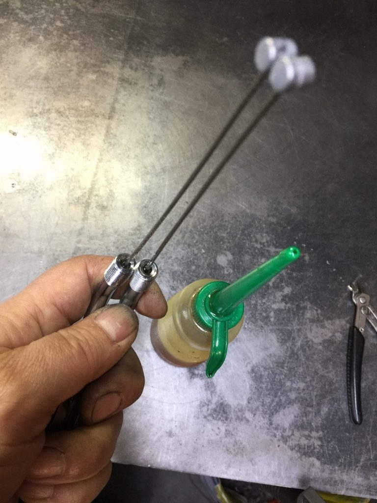 ケーブルは傷んでいたので新品交換します。インナーケーブルにはエンジンオイルを10滴ほど注油します。
