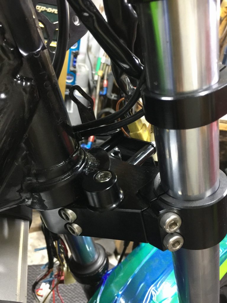 フォークとオイルクーラーコアとのクリアランスも確認し、このステムでの最大切れ角でセットできました。