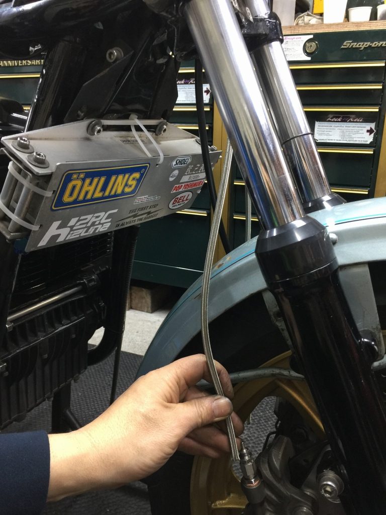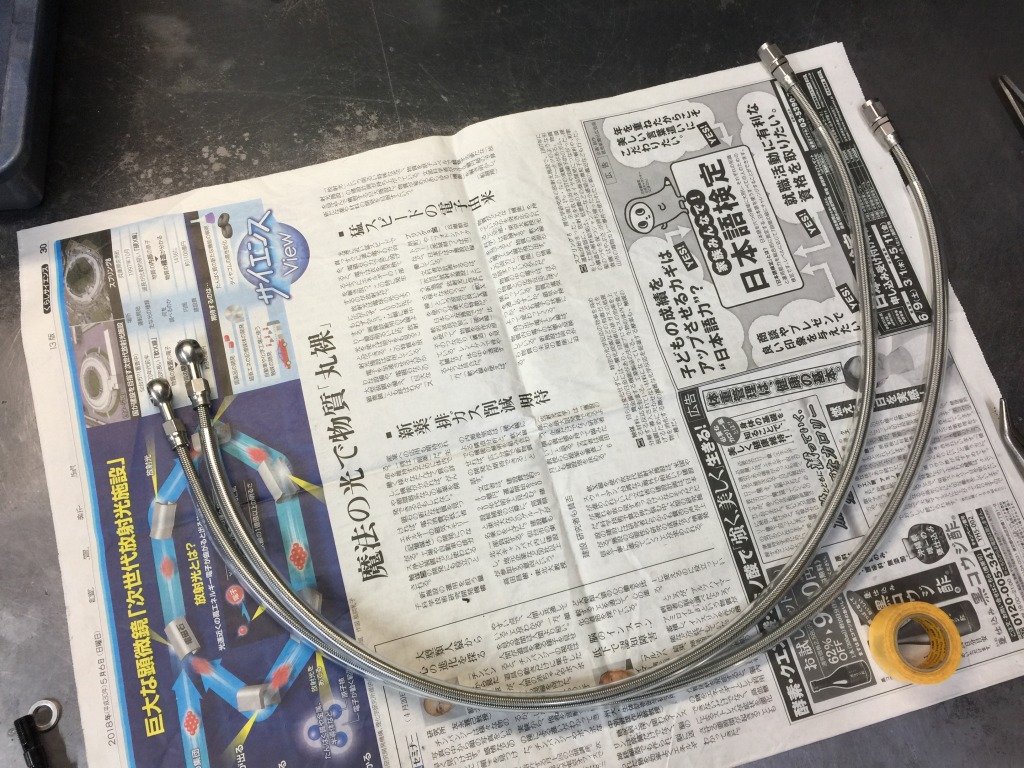 ブレーキホースを製作します。ホースはマスターから分かれる2本引き仕様にします。