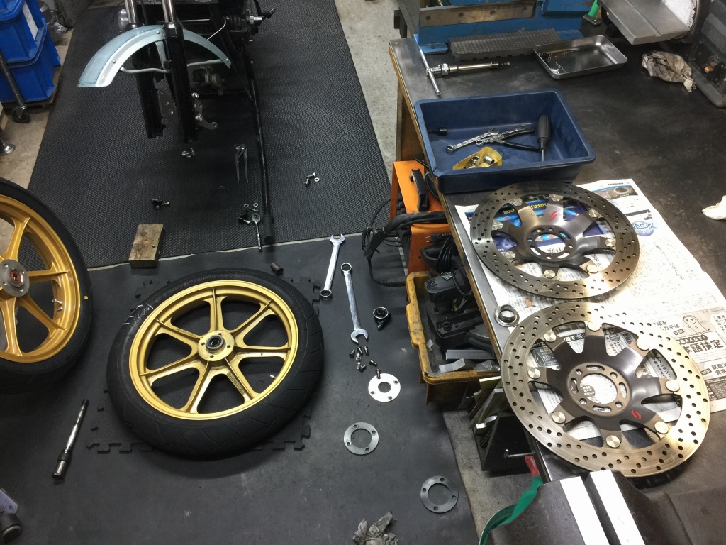 タイヤも新品のα14Zを装着。ローターなどは移植します。