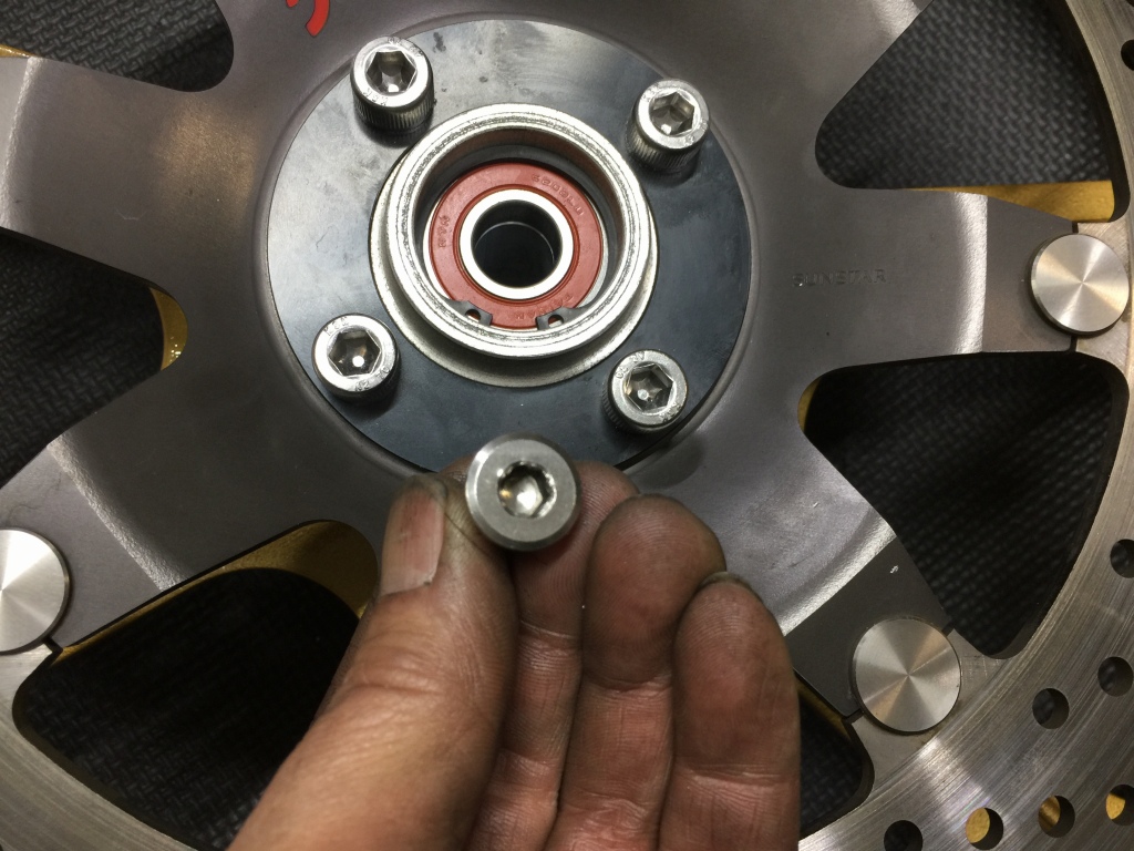 ローターボルトは6角穴が潰れかけていたので、標準サイズの8ミリ6角穴のボルトに変更します。