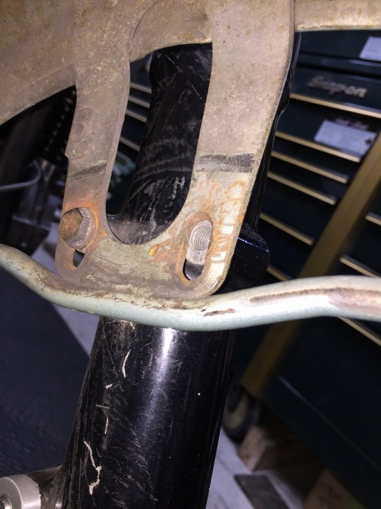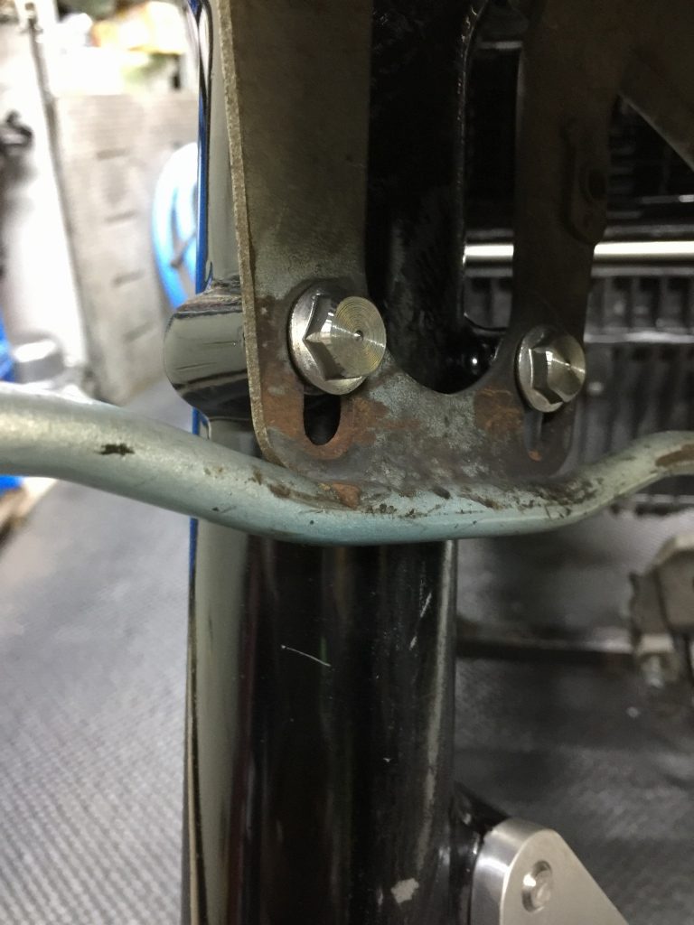 フロントフェンダーはボルトが1本付いていません。よく見るとネジ山がかなり無くなっっているので付かないようです。