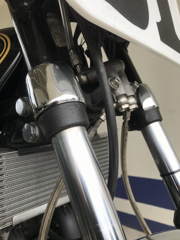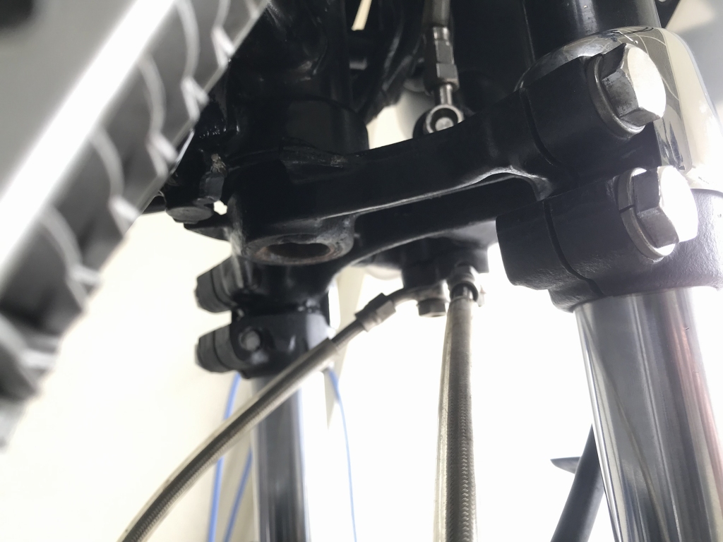 アンダーステムはクランプを2段重ねにしたワークススペシャル。上下は溶接しています。