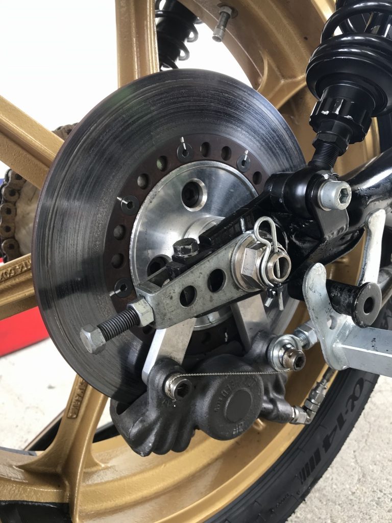 リヤローターはS1サイズのφ234ミリ、アウターの材質はプラスミュー製の特殊鋳鉄です。だいぶクラックが入ってきたので、今回でステンレス製に交換する予定。