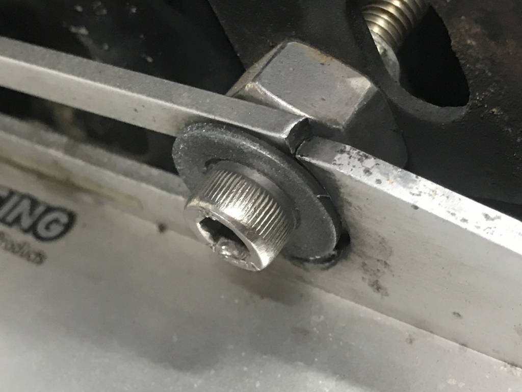 平ワッシャーで隠れていましたが、もう完全に破断しています。ブラケットは要交換です。