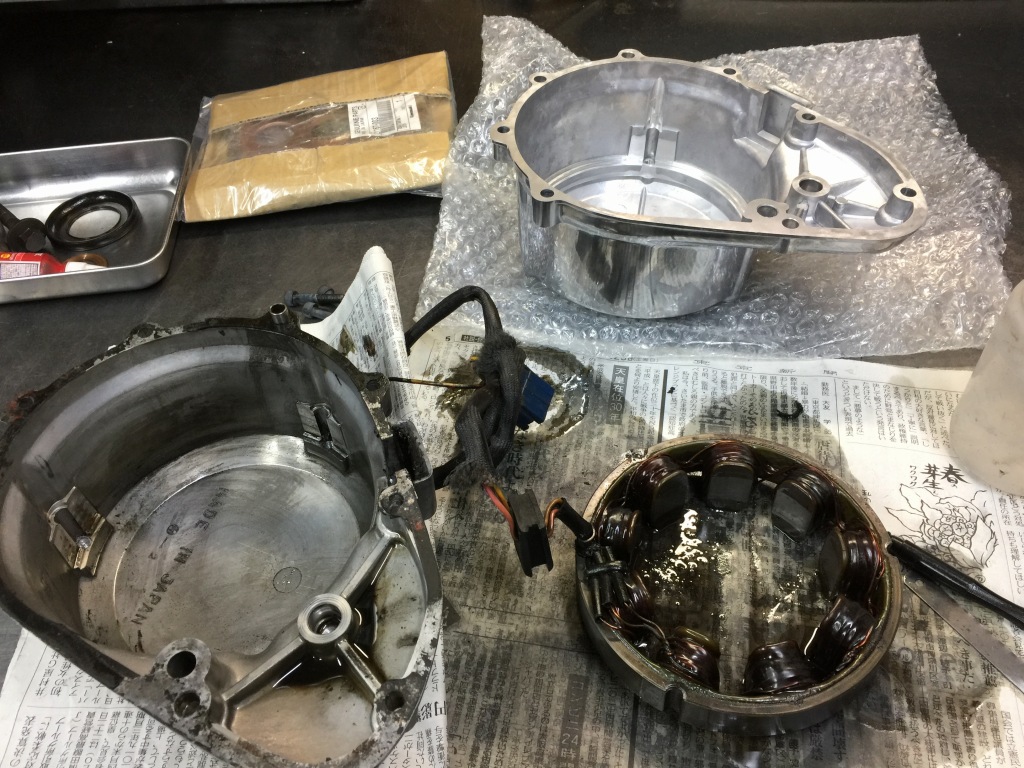 ジェネレーターカバーは接地して削れているので新品交換します。