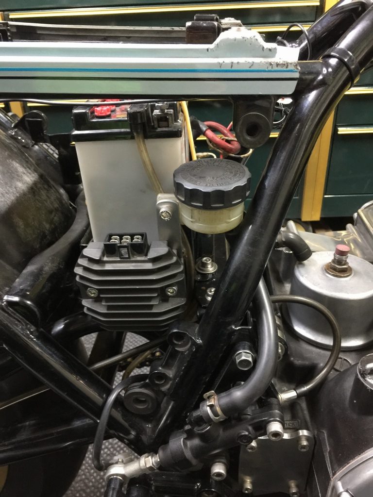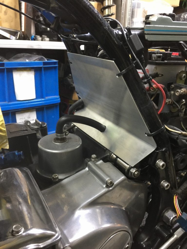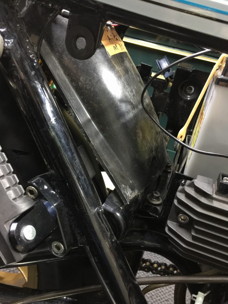 リザーバータンクはフレームの後ろ側に移設します。