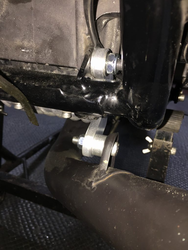 マフラーステーは元のステーから型取りして製作したのですが、マフラーを取り付けてみるとかなり高さが異なります。
