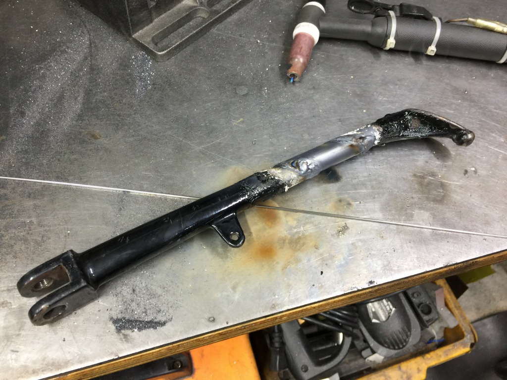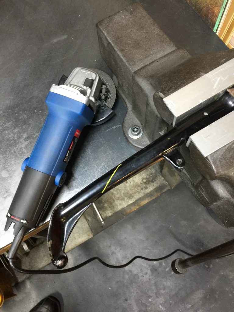 続いて、ロングのチェンジアームを製作します。純正品を素材にして、長いアームを溶接します。