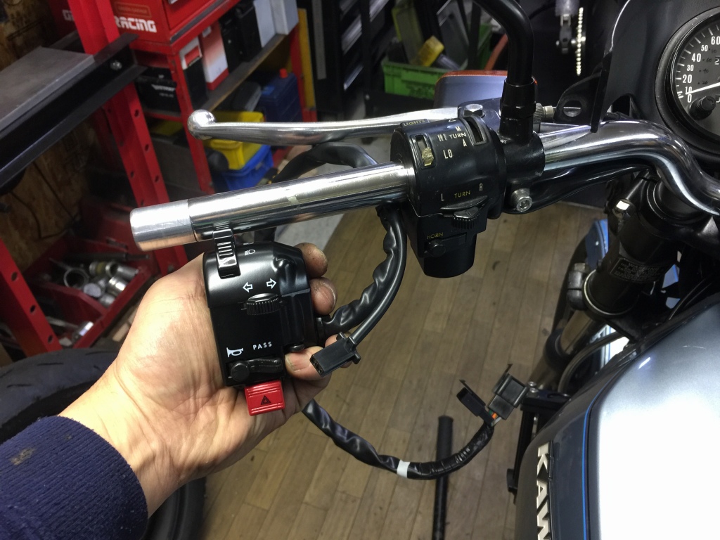 ハンドルスイッチはノーマルのままだった右側を交換します。