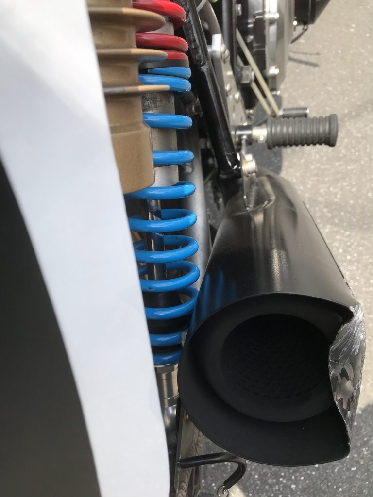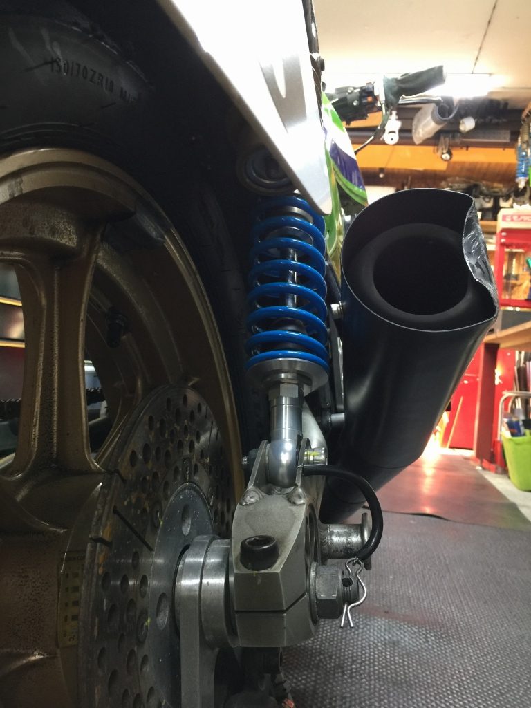 裏側にはリヤショックのスプリングで潰れた痕が。