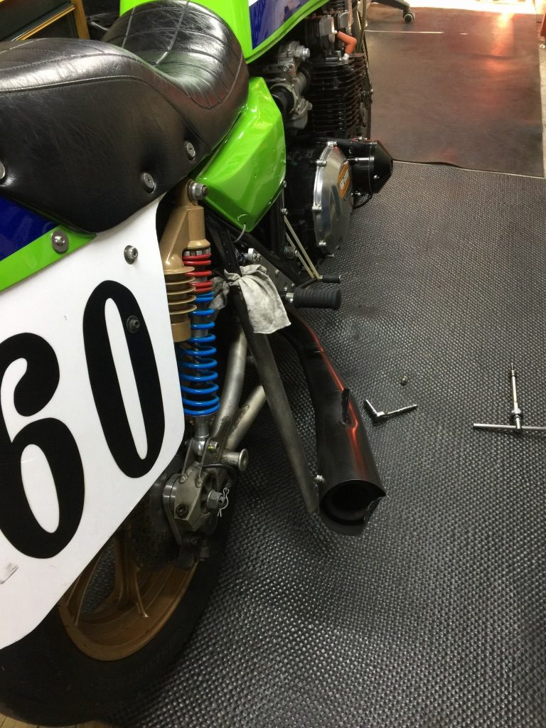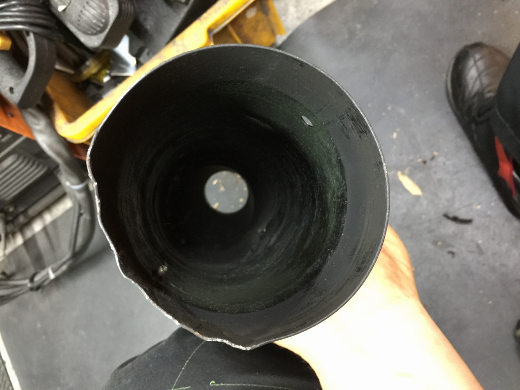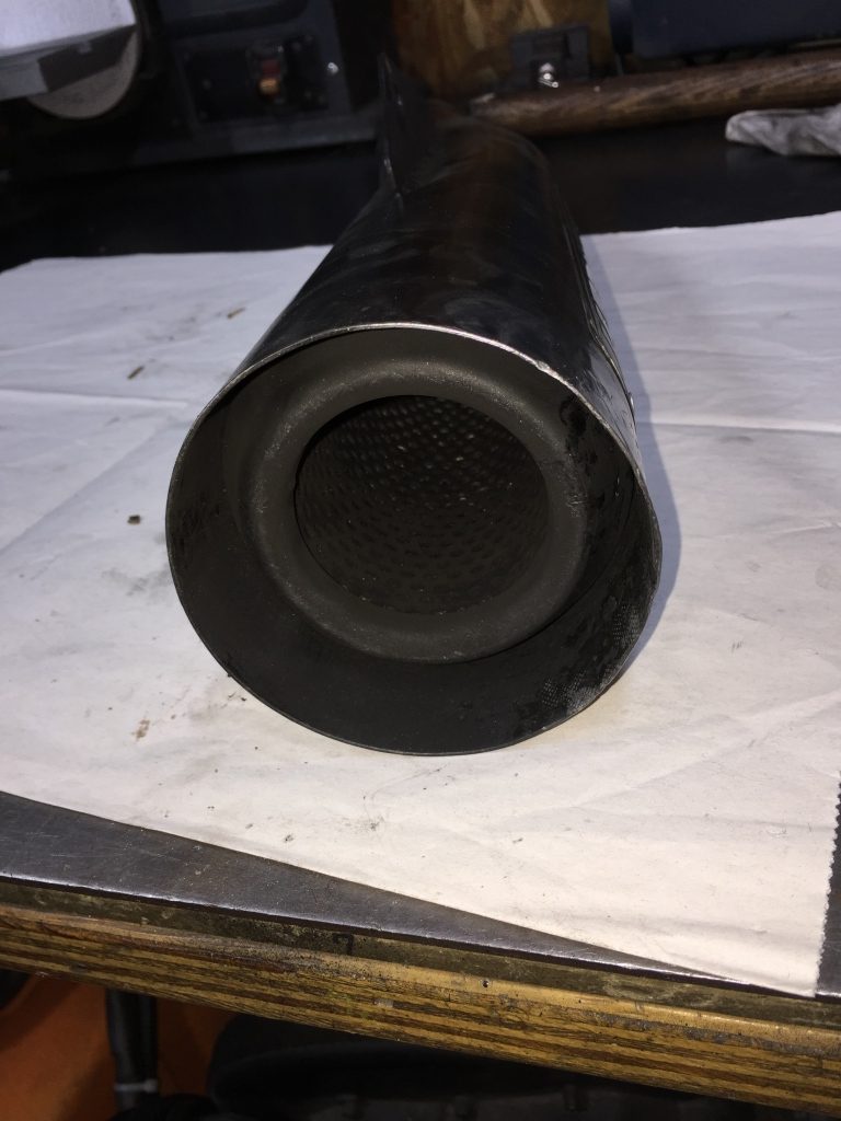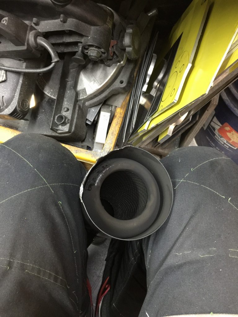 続いてサイレンサー。板金するにはバッフルを抜いて作業したいですが、はたして抜けるでしょうか。