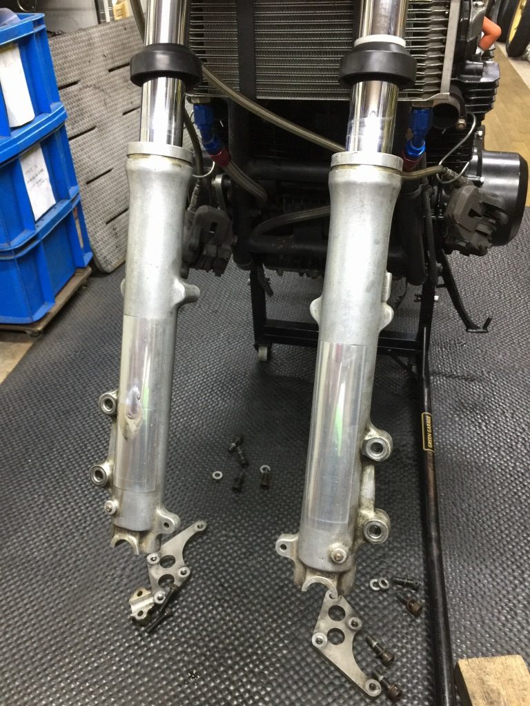 予定では前後タイヤとヘッドガスケット交換というメニューでしたが、軽トラへの積み込み時に道板から落下させてしまったそうで、数ヶ所大きく破損しています。