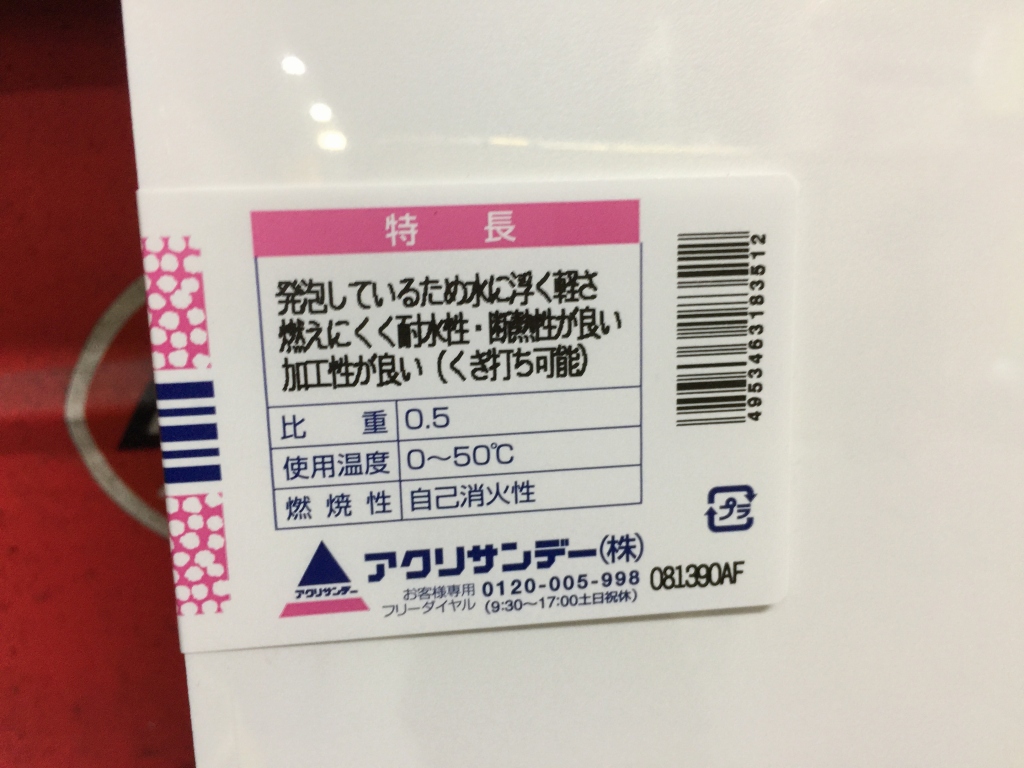 素材は5ミリ厚の発泡塩ビを使います。アクリル板より軽いのが特徴です。