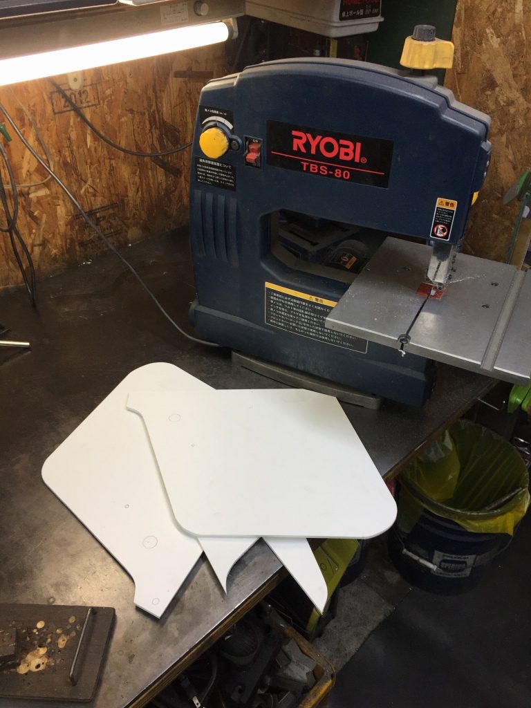 直線部分はカッターで、曲線はバンドソーで切ります。