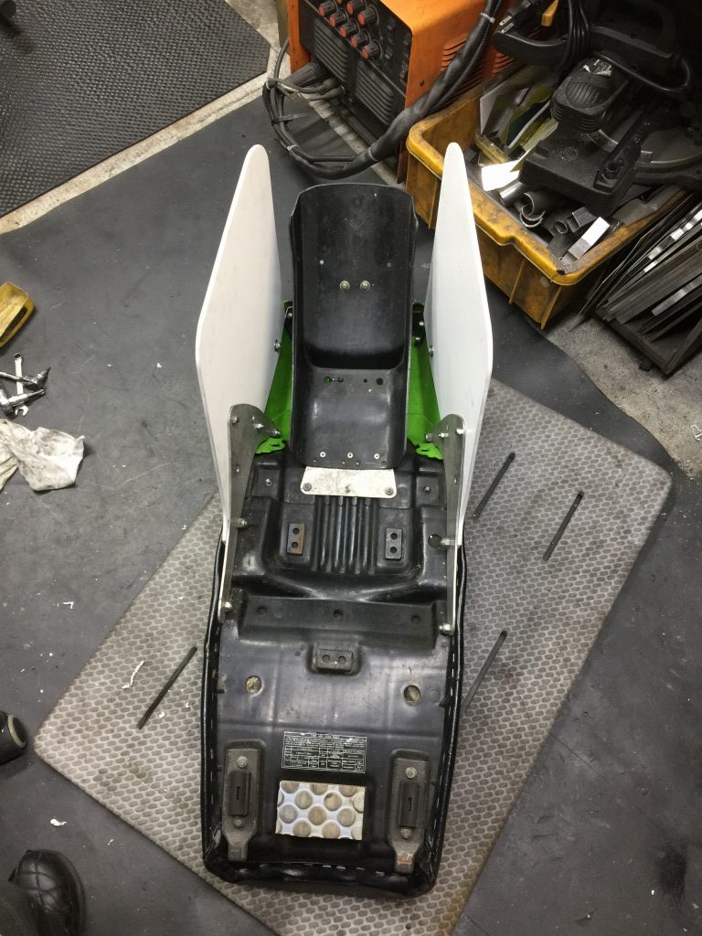 曲がっていたブラケットを修正してリヤフェンダーを復元します。真っ直ぐになりました。
