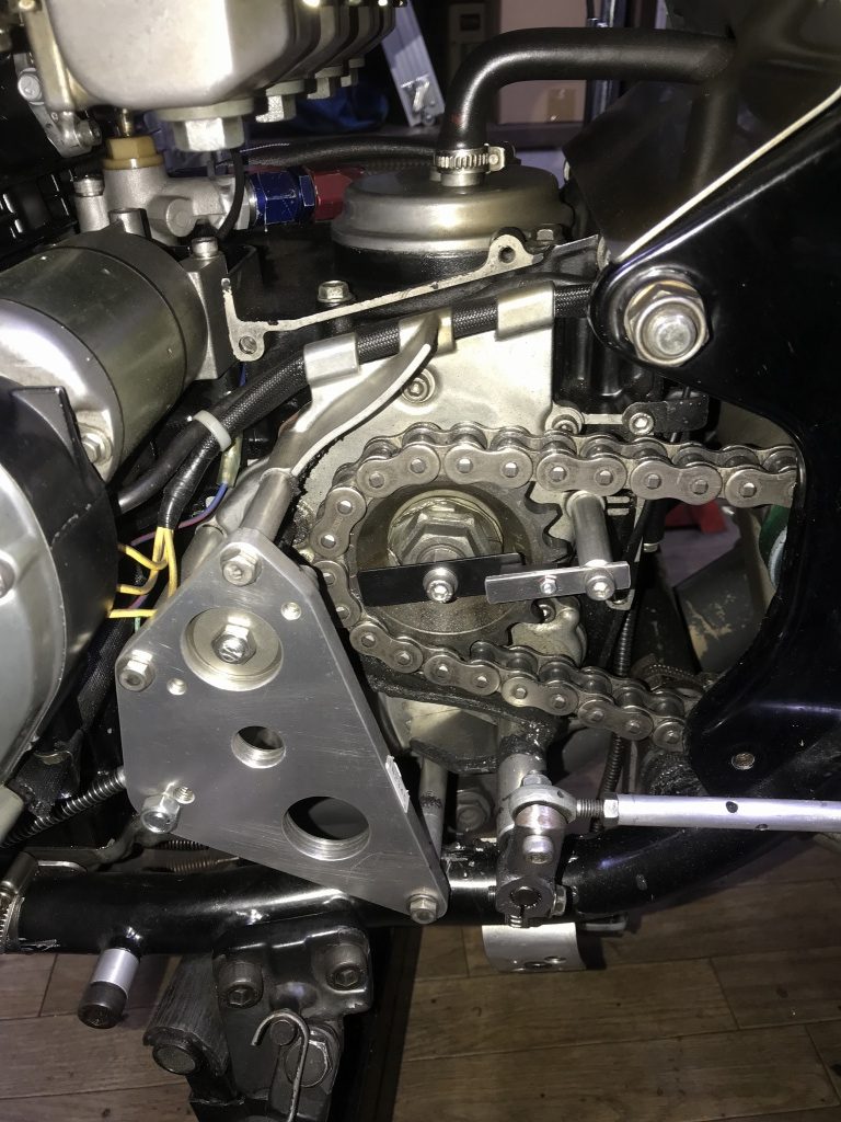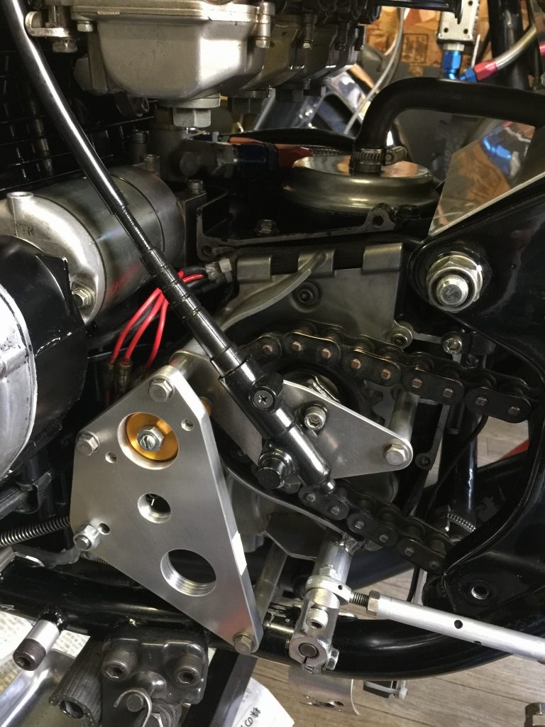 車両への取り付け例はこちら。こちらはアウトプットシャフトが後期の中空タイプですが、前期のスプロケボルト止めタイプにも対応したキットもあります。
