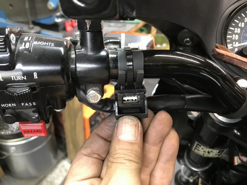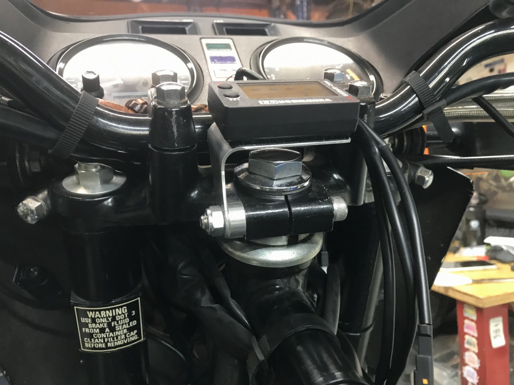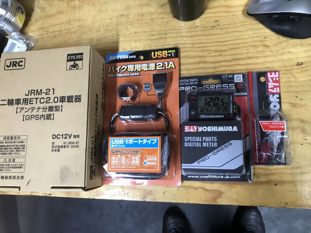 コックピットはこんな感じです。ETCのインジケーターは乗車姿勢でスピードメーターの下を除くと確認できるようにしてあります。